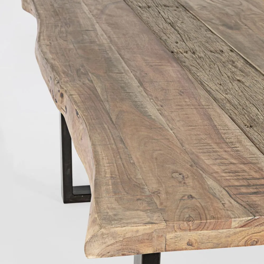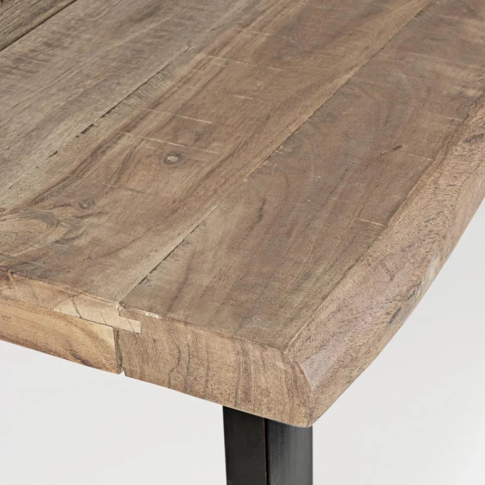 Esstisch aus Akazienholz mit recyceltem Einsatz und Stahlgestell, 8 Personen.
