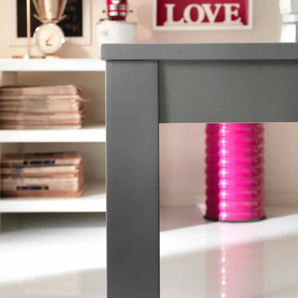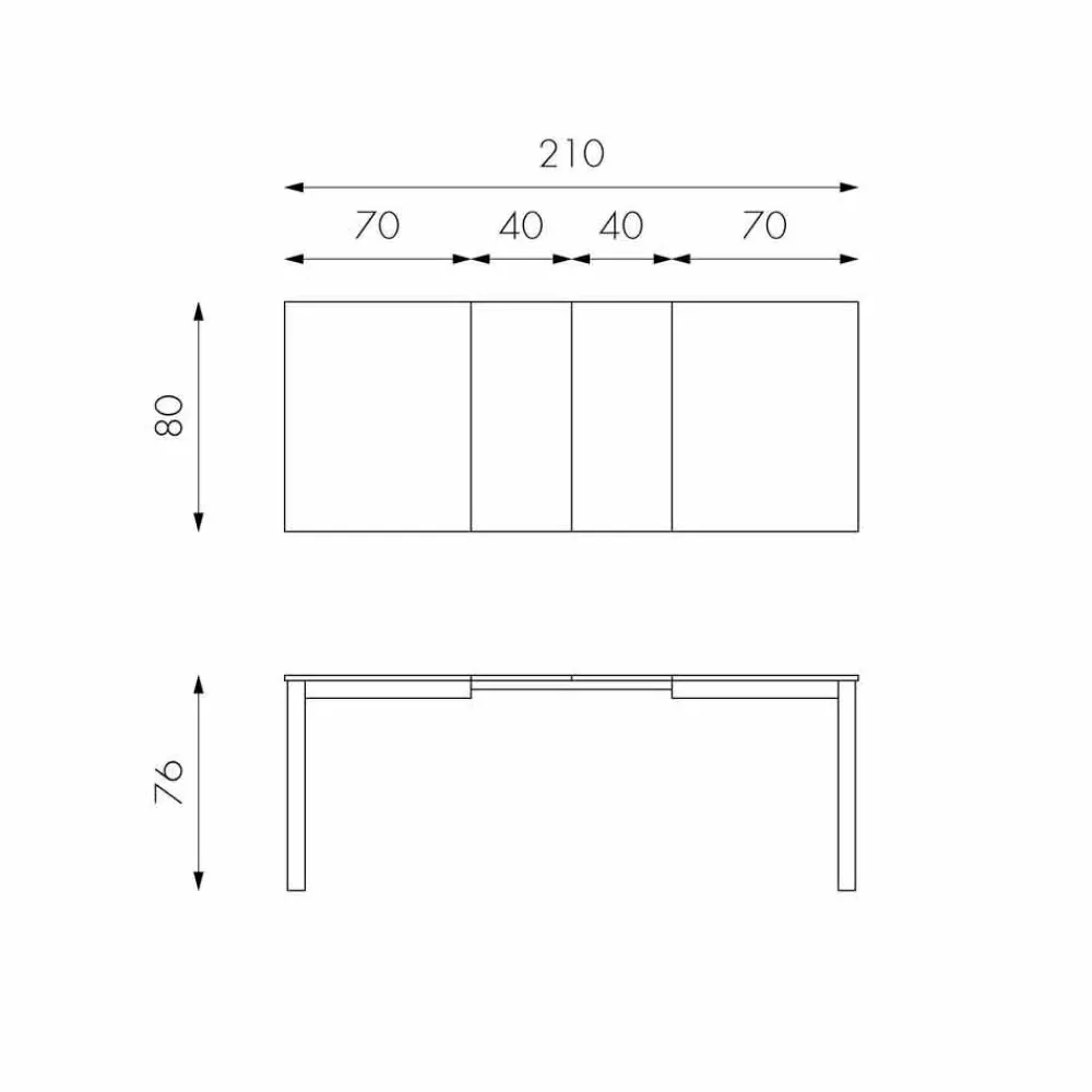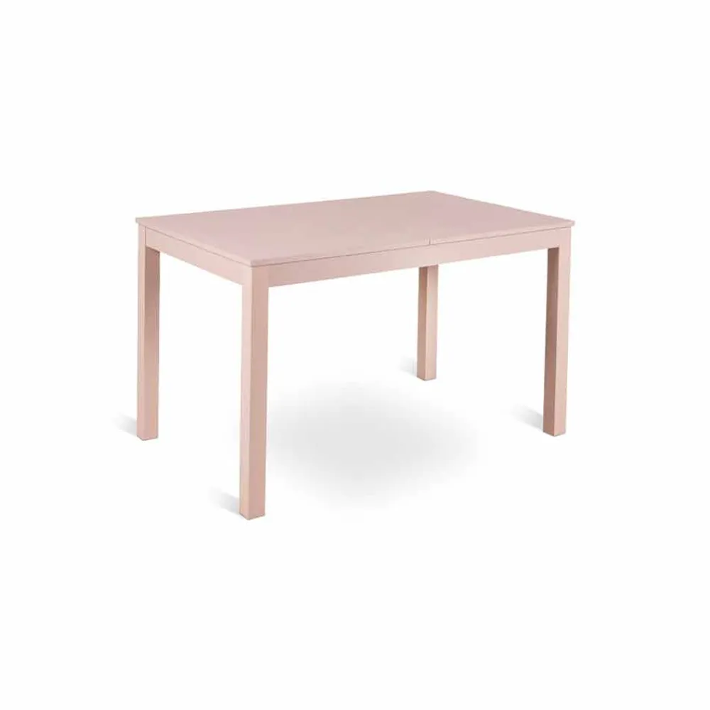 Tisch mit Sockel aus massivem Buchenholz und Melaminplatte. Es hat 2 Verlängerungen von jeweils 40 cm, die im Tisch untergebracht sind. In verschiedenen Farben erhältlich.