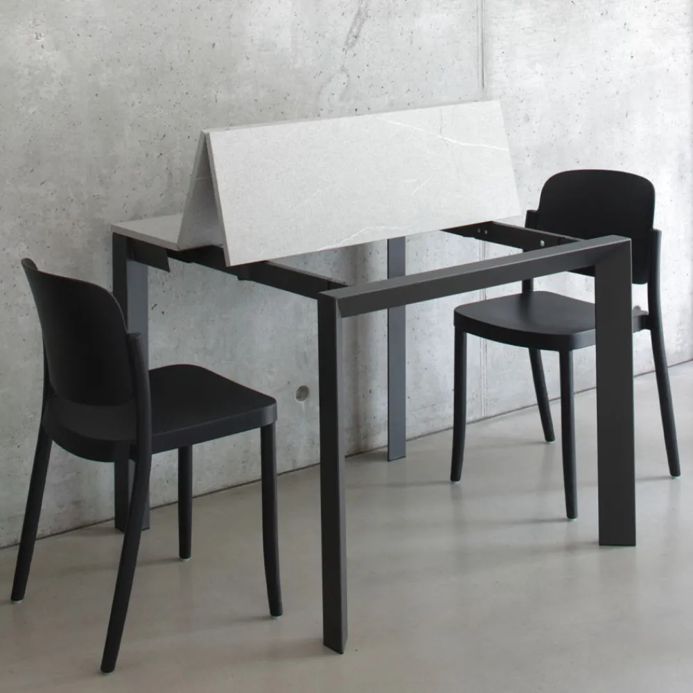 Die wahre Magie zeigt sich in seinem Verwandlungspotenzial: Er lässt sich leicht zu einem großzügigen Tisch erweitern , an dem Abendessen, Arbeitssitzungen oder gesellige Momente mit Freunden und der Familie stattfinden können. Er ist ideal für alle, die platzsparende Lösungen suchen, ohne auf die Funktionalität eines großen Tisches zu verzichten .