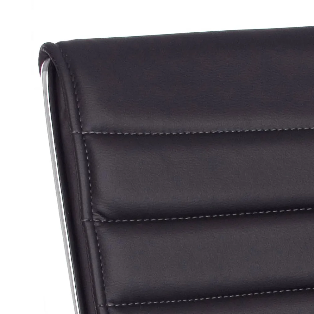 Die Armlehnen aus verchromtem Stahl verfügen über eine Kunstlederpolsterung für ultimative Eleganz.