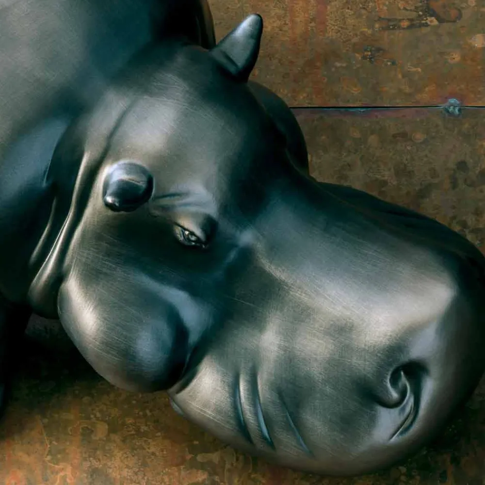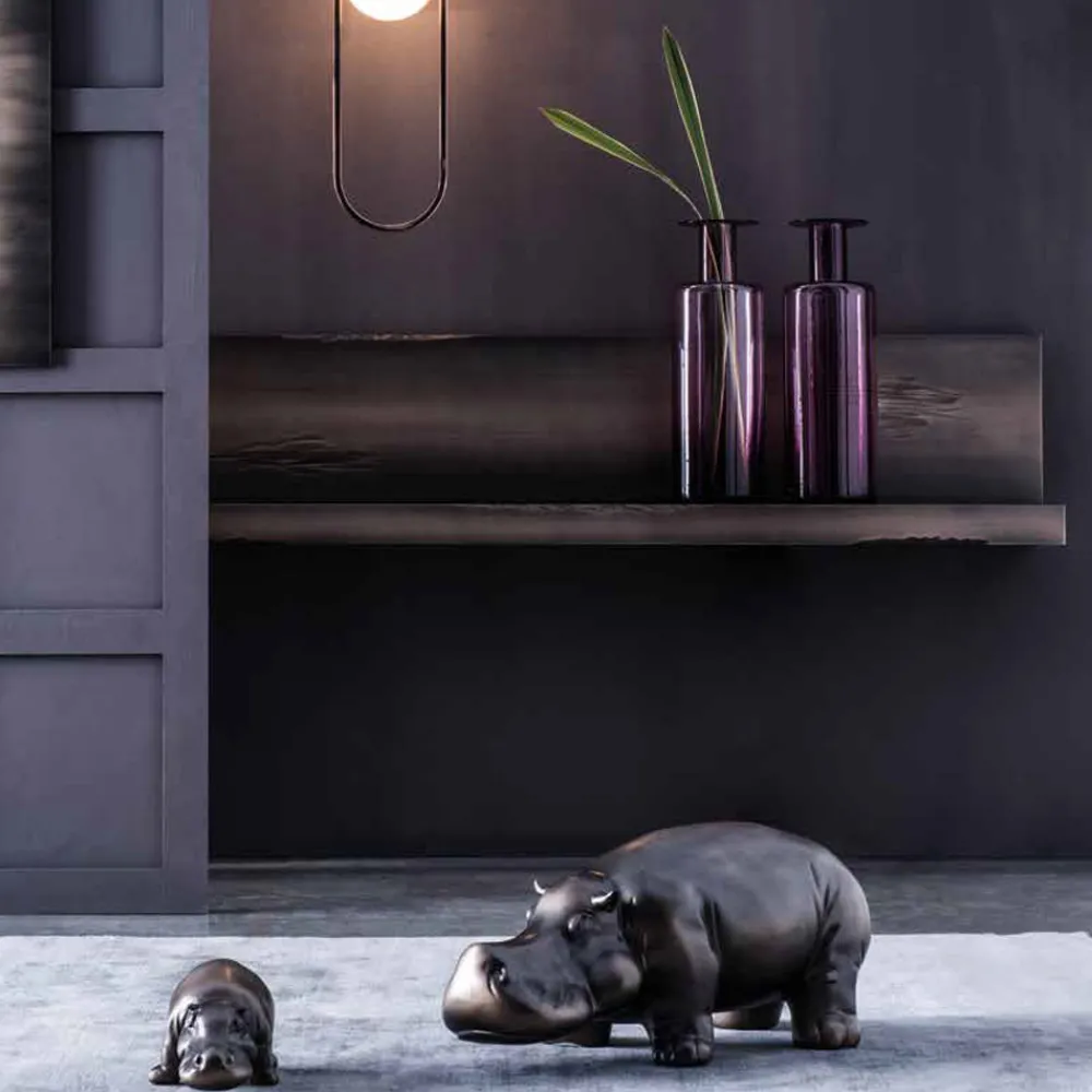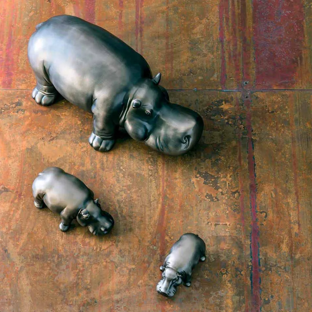 Originelle und kreative Komposition von in Italien hergestellten nilpferdförmigen Ornamenten aus Keramik mit goldschwarzer Oberfläche. Eine exzentrische Idee voller Persönlichkeit, ideal für alle, die ihre Möbel gerne fantasievoll bereichern. Ihre skurrile Seele macht sie perfekt für den Einsatz in häuslichen Umgebungen, aber auch in Objekten, in denen sie dank ihrer Einzigartigkeit die Aufmerksamkeit auf sich ziehen und den gesamten Raum mit einer lebendigen und lustigen Note charakterisieren.