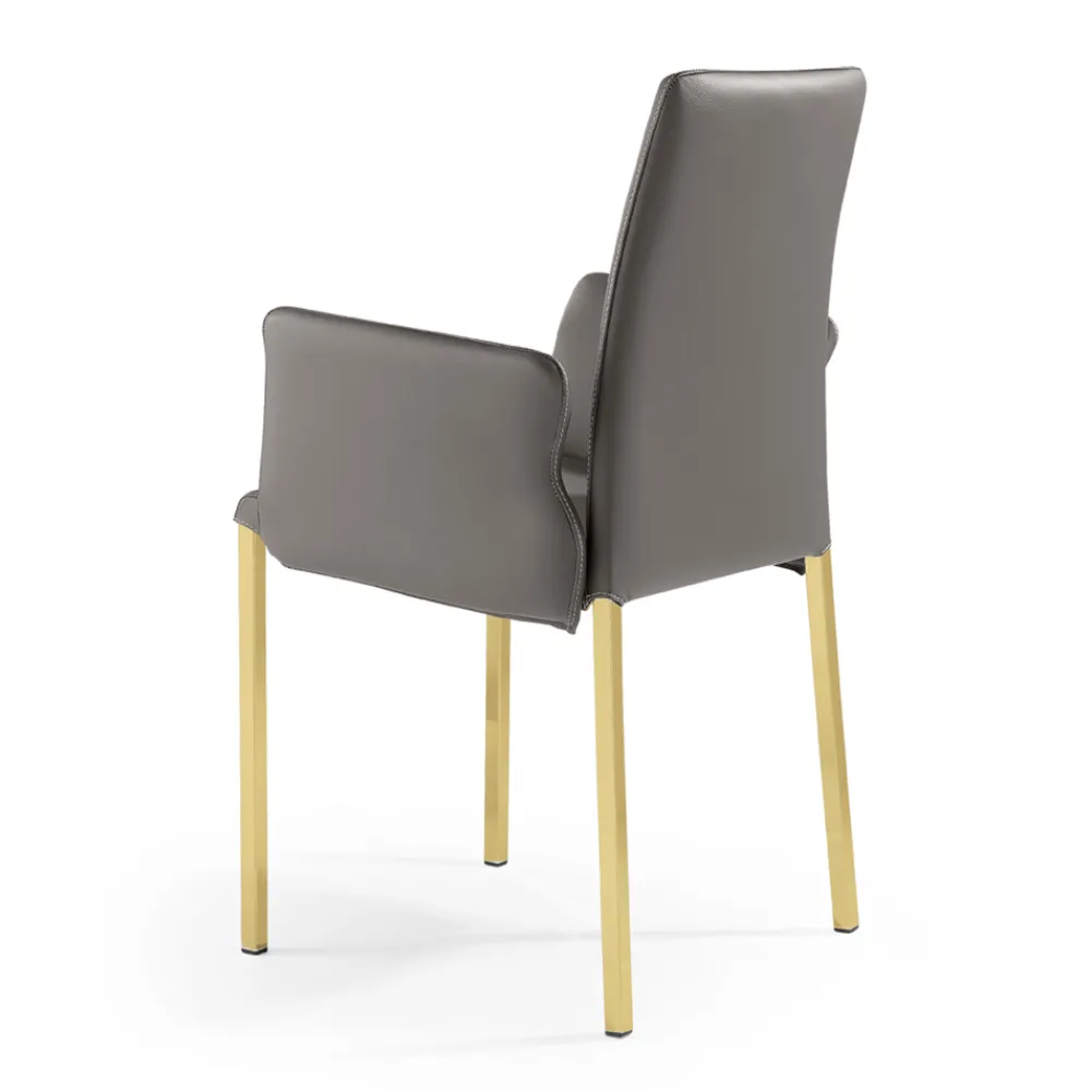 Esszimmerstuhl hergestellt mit goldlackierter Vierkantstahlrohrstruktur und Sitz mit anthrazitfarbenem Lederbezug, vollständig in Italien hergestellt.