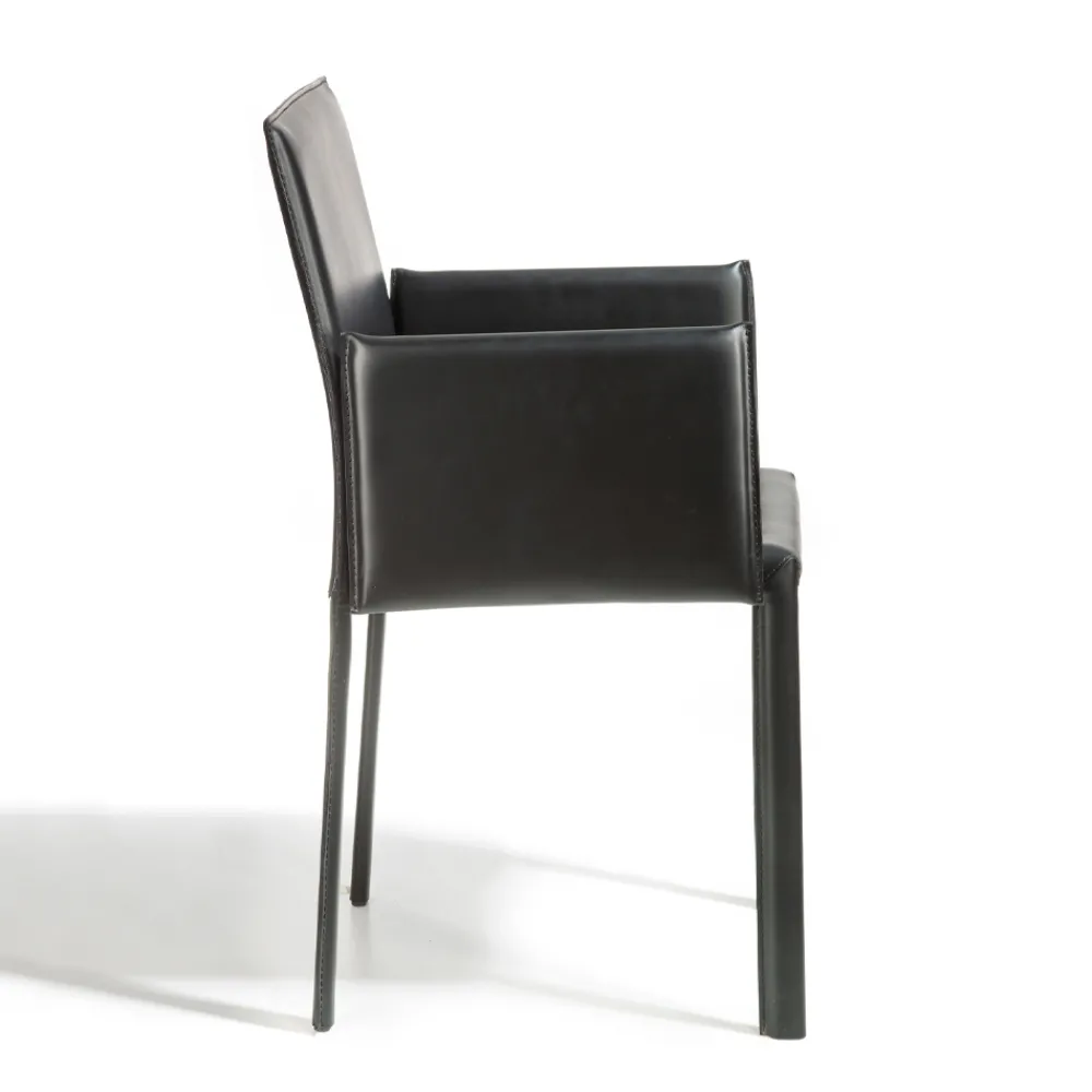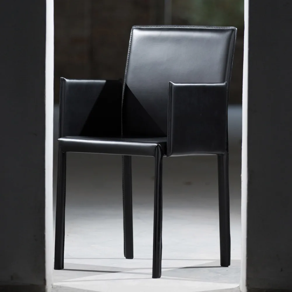 Esszimmerstuhl mit Armlehnen , komplett in Italien hergestellt, komplett mit Leder in schwarzer Ausführung bezogen. Struktur mit ovalem Bein 30×15 mm.