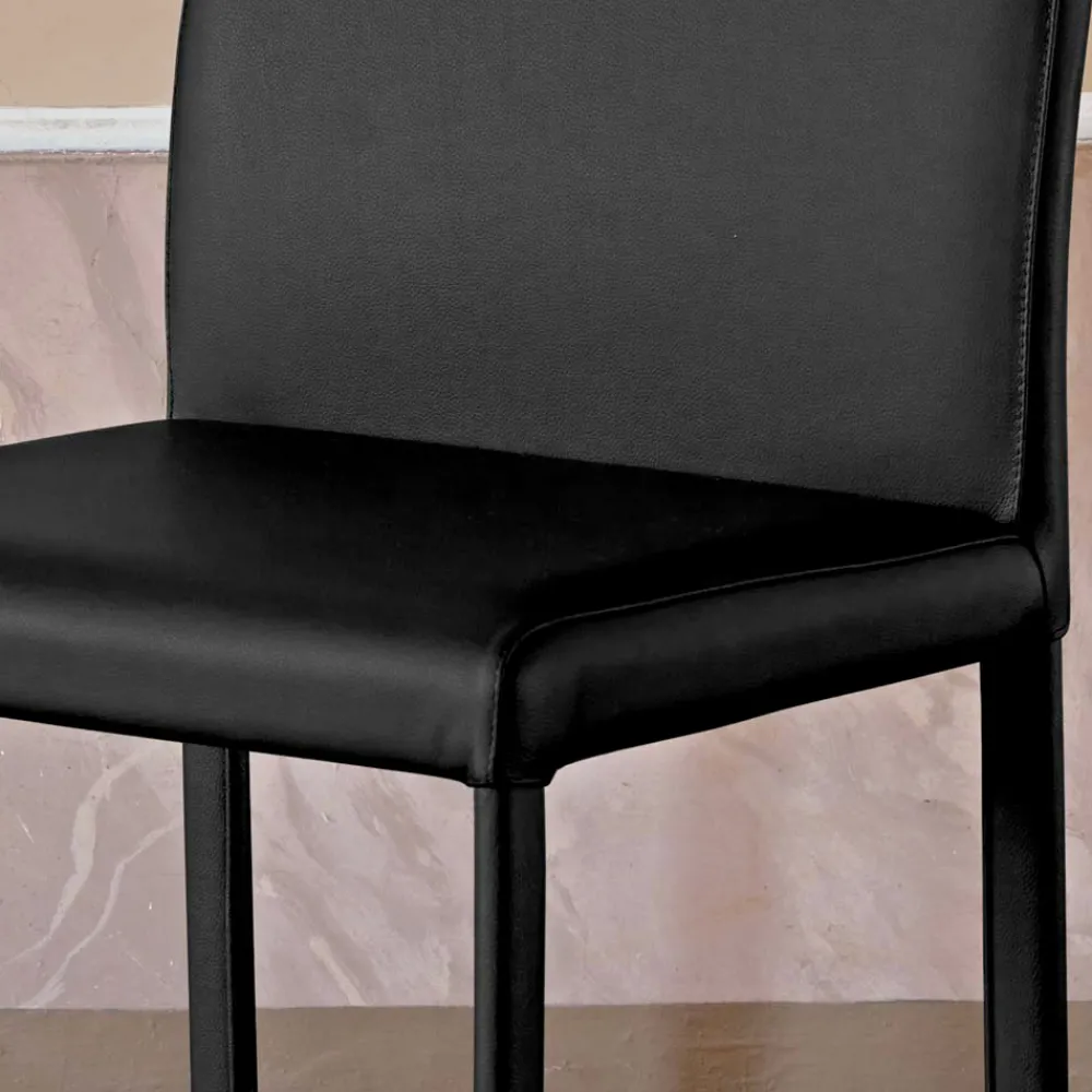 Komplett in Italien hergestellter Esszimmerstuhl , komplett mit schwarzem Leder bezogen. Struktur mit ovalem Bein 30×15 mm.