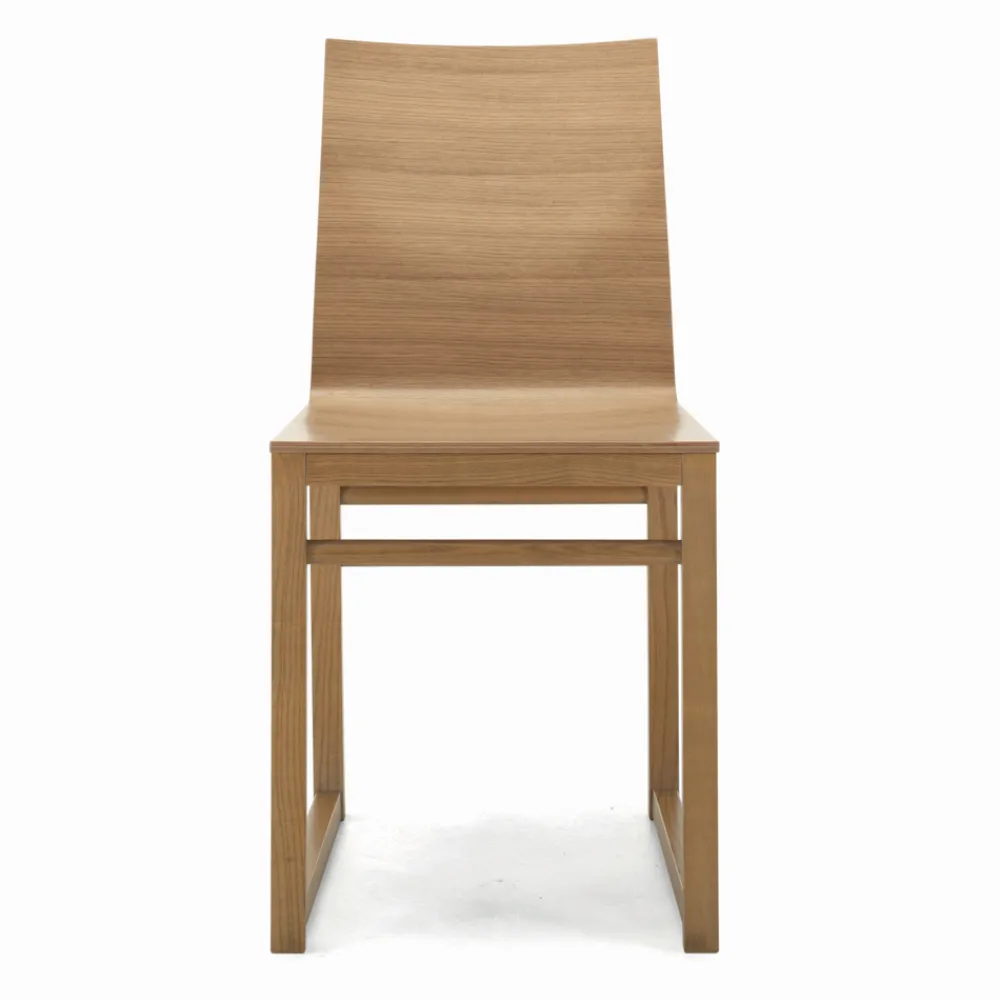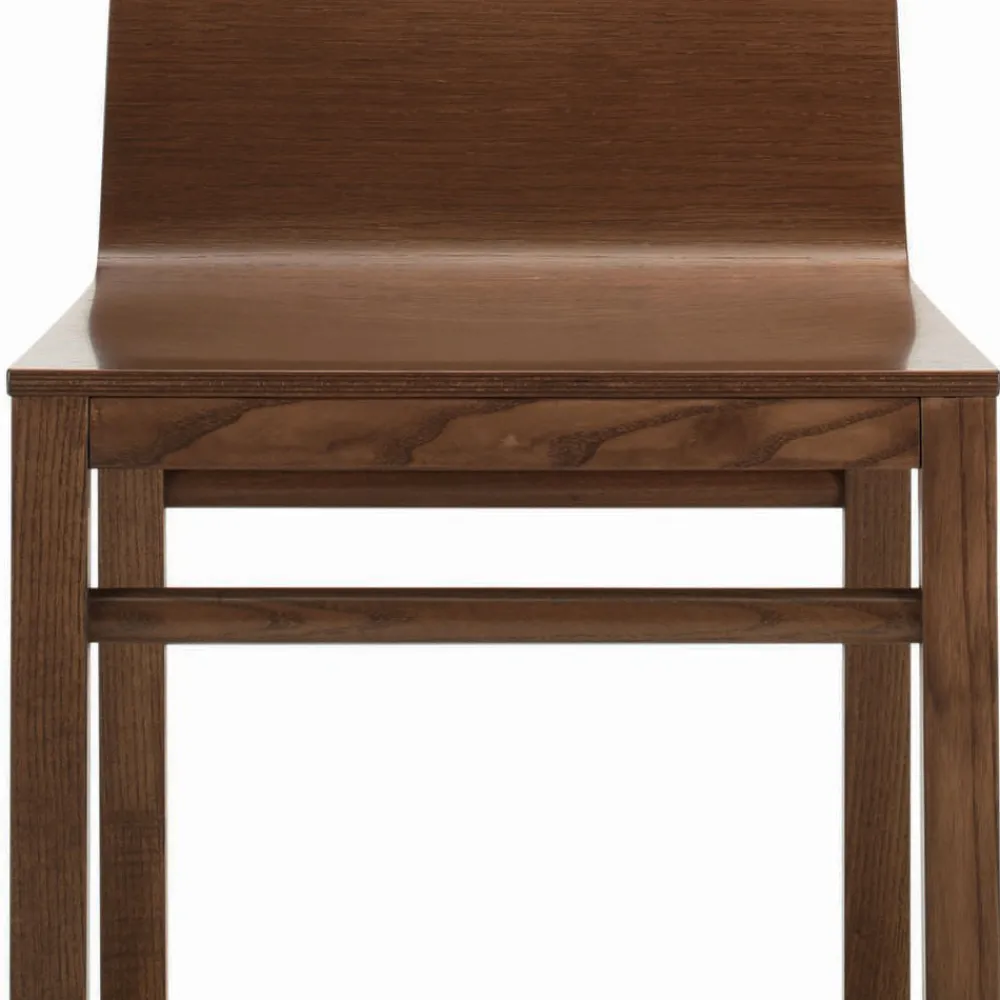 Wohnzimmerstuhl mit Gestell aus Esche und Sitzschale aus Sperrholz mit Eichenfurnier .
