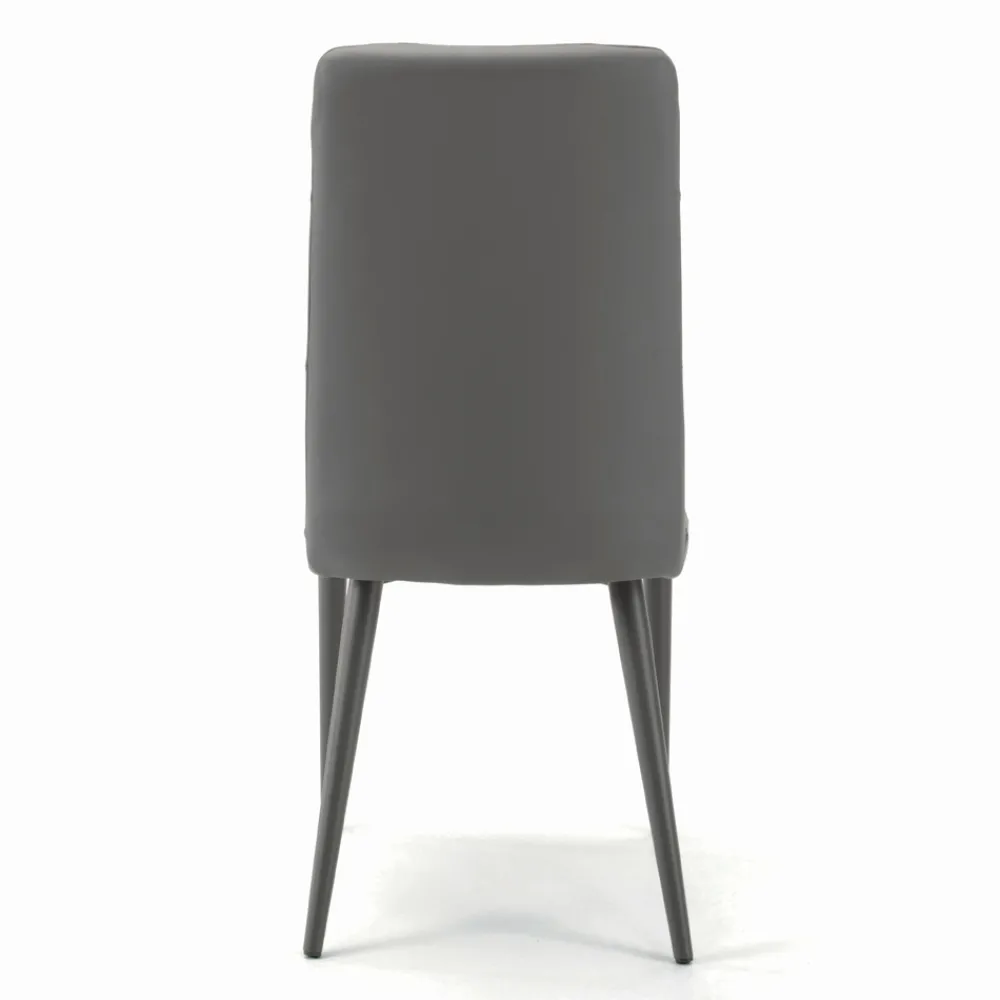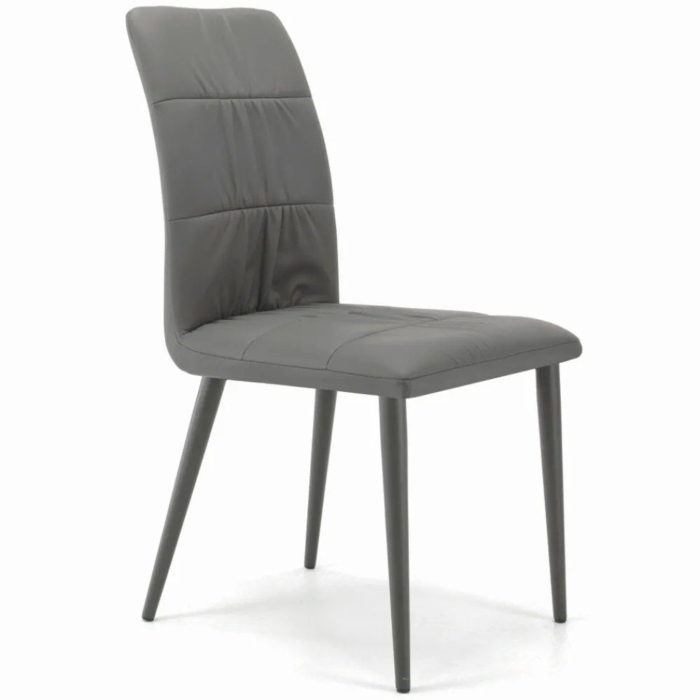 Wohnzimmerstuhl mit Sitz und Rückenlehne aus Stahl, komplett mit Kunstleder bezogen und lackierten Beinen.