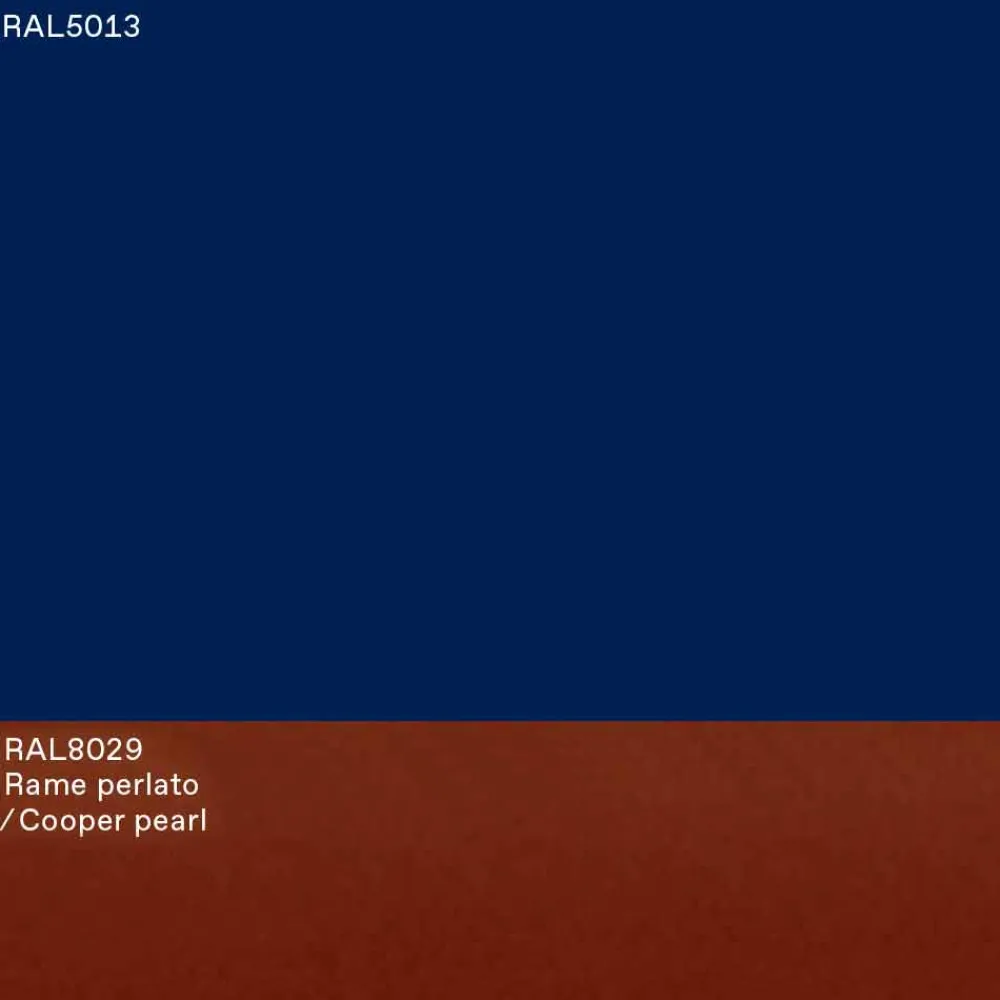 - Kobaltblaue Struktur RAL5013 + Details unter der Oberseite und unter dem Sockel in perlmuttfarbenem Kupfer RAL8029