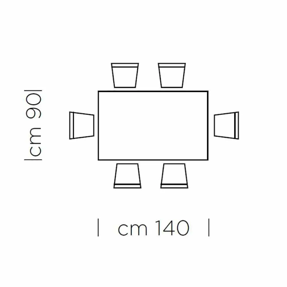 - L 140 x T 90 x H 75,5 cm (6 Sitzplätze);
