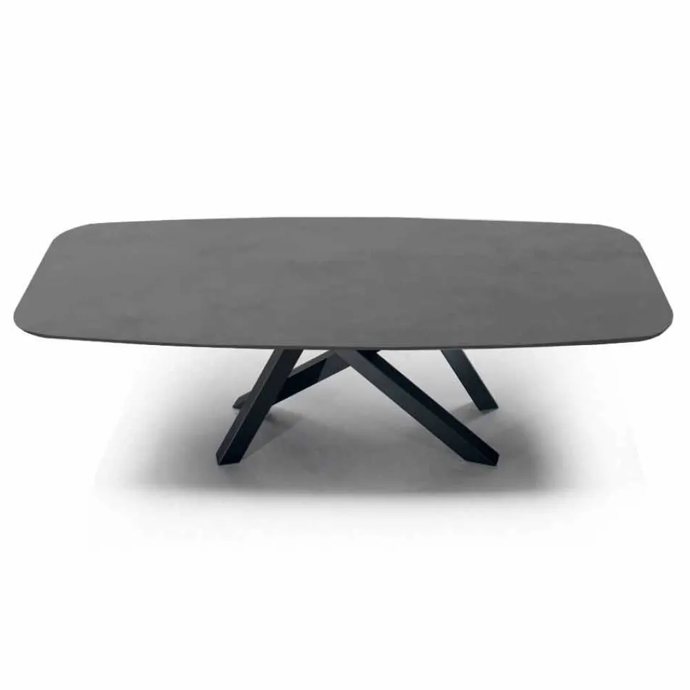 Esstisch mit tonnenförmiger Platte aus luxuriösem HPL-Laminat Made in Italy.