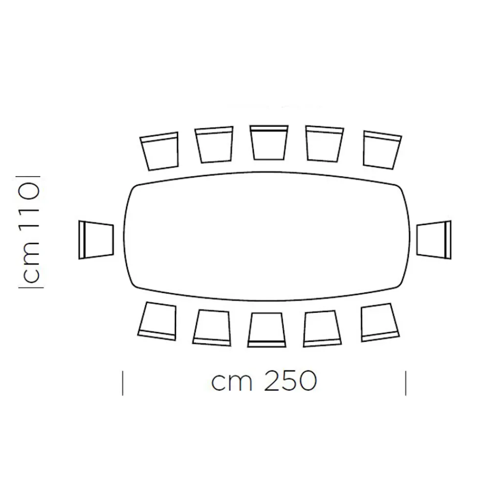 - L 250 x T 110 x H 75,3 cm (12 Sitzplätze).