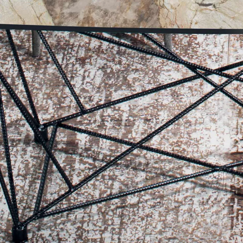 Das charakteristische Element dieses Produkts ist das visuelle Spiel von Linien und Formen, das durch das Stahlgestell entsteht und dem Tisch Bewegung und Originalität verleiht. Diese Möbel sind perfekt für alle, die ihre Wohn- oder Objektumgebung mit einer raffinierten und raffinierten Note einrichten möchten, ohne auf Funktionalität zu verzichten. Die italienischen Kunsthandwerker wollten einen Tisch schaffen, der nicht nur schön anzusehen, sondern auch zu verschiedenen Anlässen verwendbar ist.
