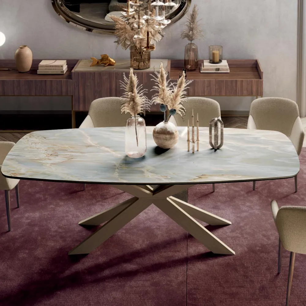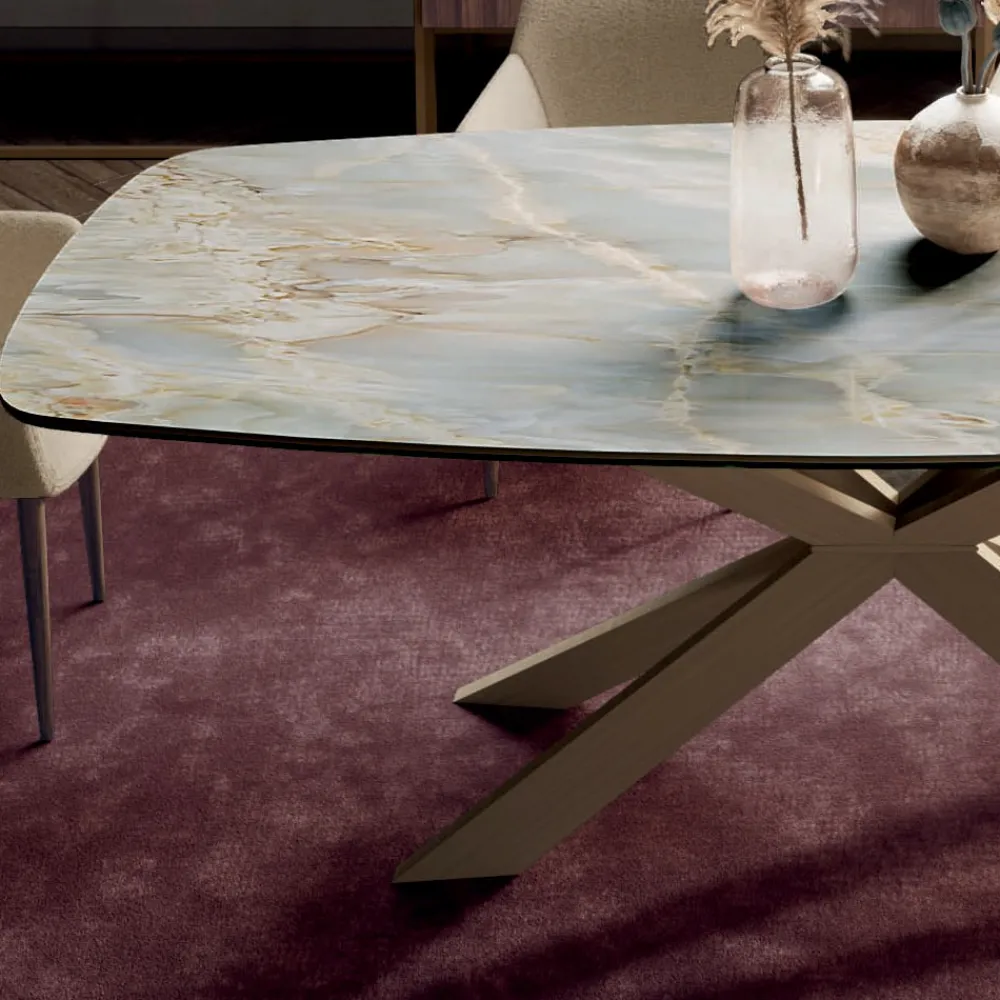 Fester Tisch aus Stahl und Keramik, hergestellt in Italien