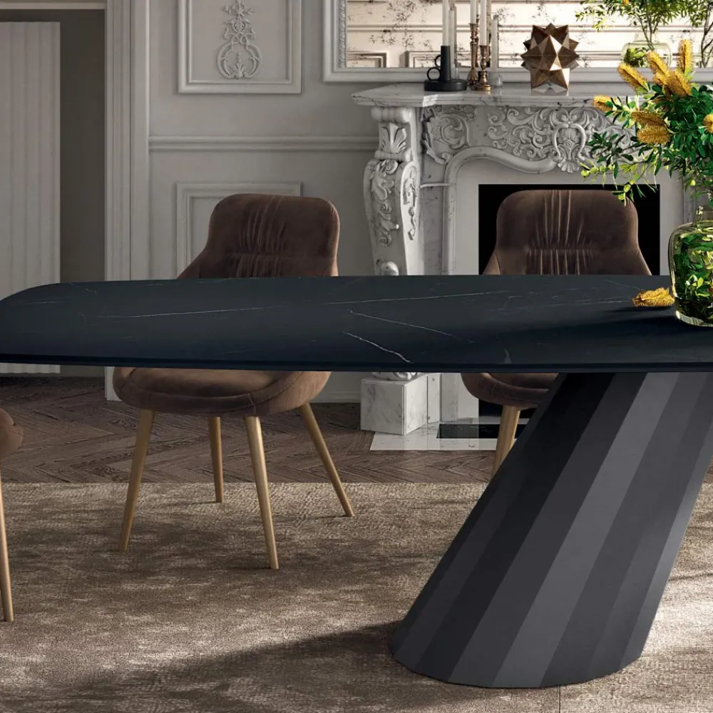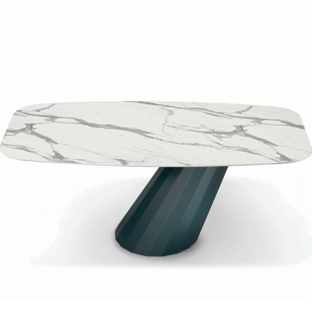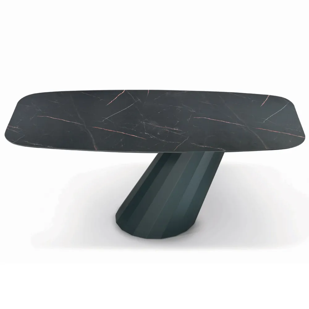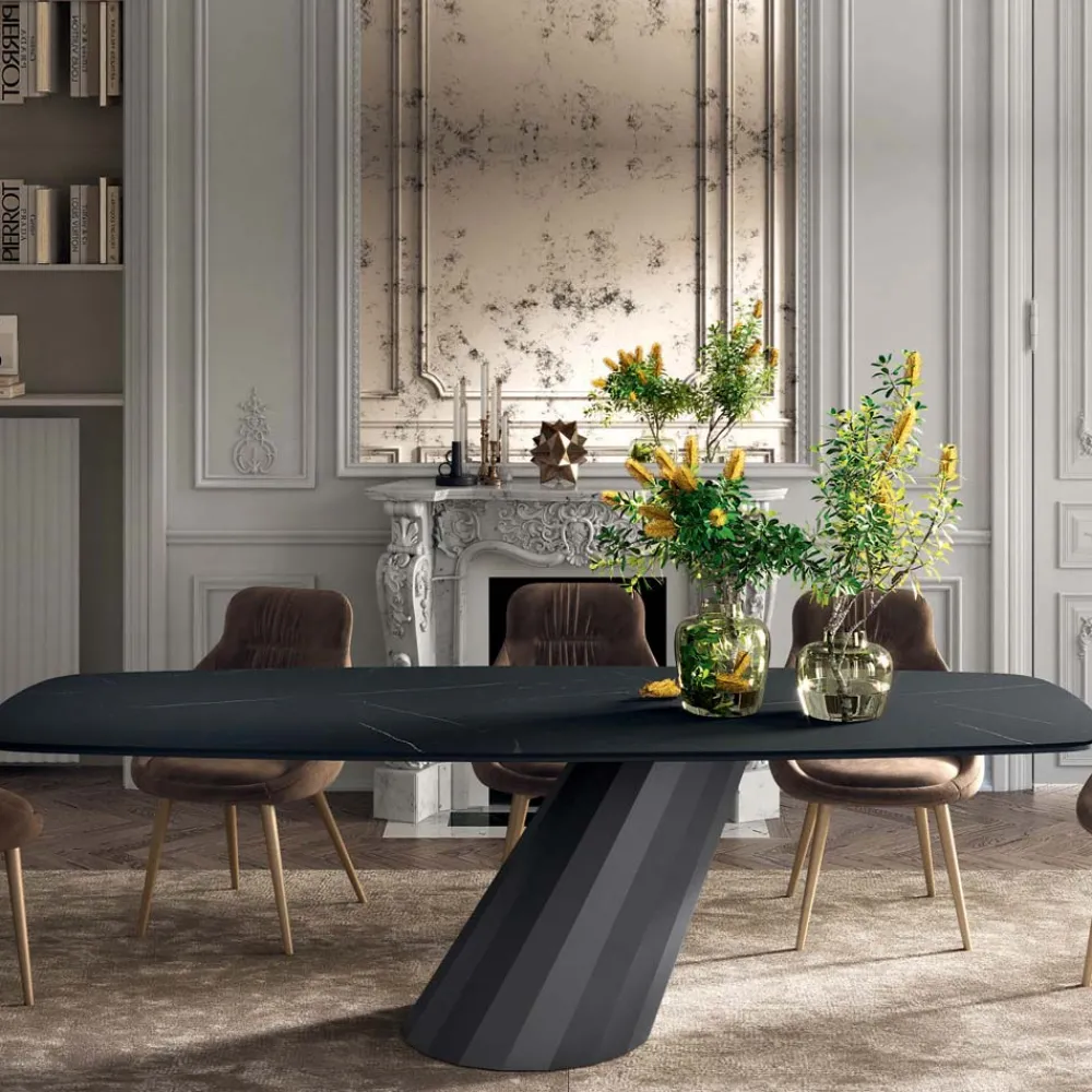 Dieses Produkt strahlt große Eleganz aus und wird zum Protagonisten jeder Umgebung . Durch die Verfeinerung der Form des Untergestells in Kombination mit der von Ihnen gewählten Oberfläche der Tischplatte entsteht ein einzigartiger Tisch mit großer optischer Wirkung, der Alltags- und Objektumgebungen mit Geschmack und Raffinesse einrichtet. Die Auswahl hochwertiger Materialien und die Liebe zur Gestaltung jedes einzelnen Details schaffen ein Produkt von ausgezeichneter Qualität „Made in Italy“.