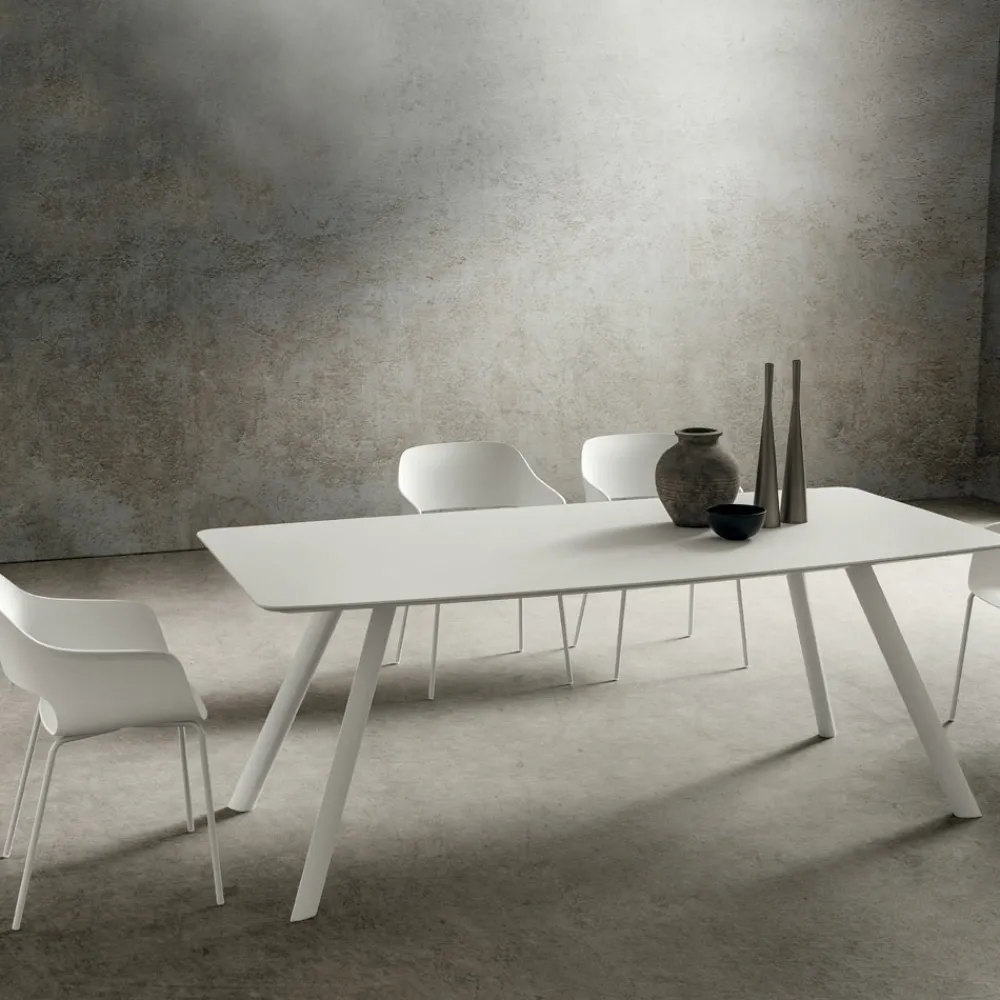 In Italien hergestellter Küchentisch mit Beinen aus epoxidlackiertem Aluminium und Platte aus 1 cm geschichtetem Fenix in Form und von einer MDF- Oberfläche getragen. Schlichtheit und Design sind die besonderen Merkmale dieses Möbelstücks im modernen Stil , das in der Lage ist, jeden Wohnraum mit zeitgenössischem Geschmack auf nüchterne und diskrete Weise zu vervollständigen. Seine Vielseitigkeit wird durch die wunderbaren und zarten Farben gegeben, die ihn zu einem idealen Tisch für diejenigen machen, die einfache Möbel lieben, die nicht unbemerkt bleiben, den Mittelpunkt der Aufmerksamkeit erobern und den wahren Protagonisten im Raum darstellen.