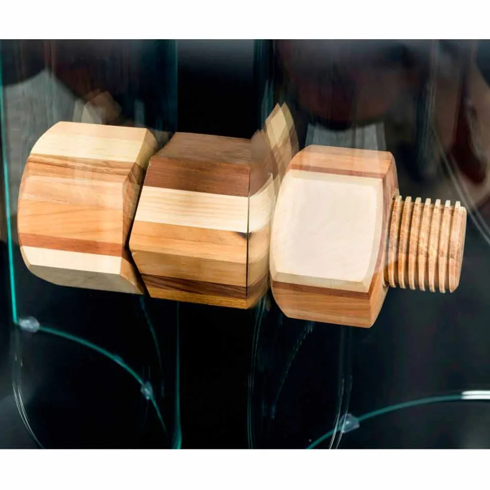 Der Tisch Portofino besteht aus zwei Glasschichten 10+10 mm. Dazwischen befindet sich Olivenholz.
