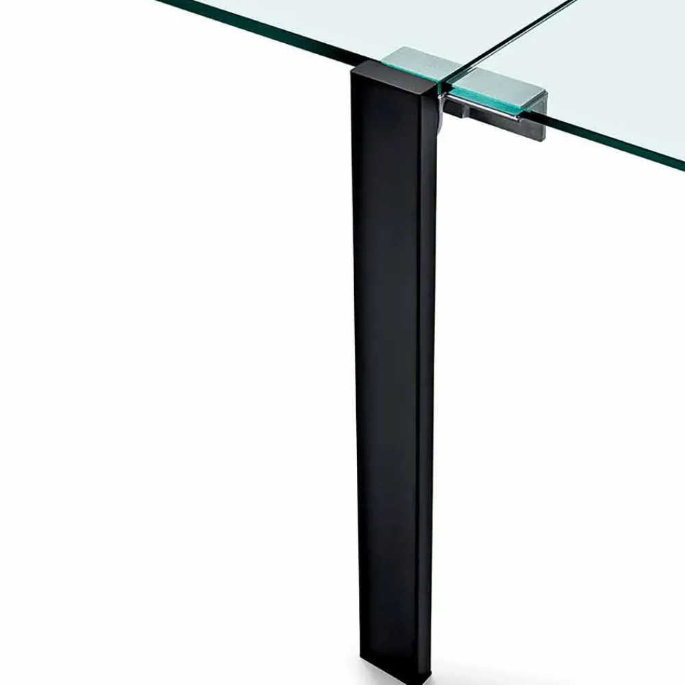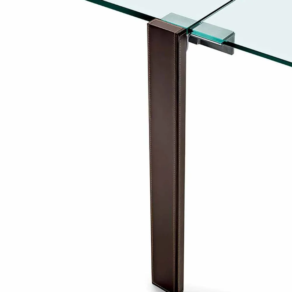 - Oberseite und Verlängerungen aus transparentem Glas, Beine aus Canaletto-Walnuss.