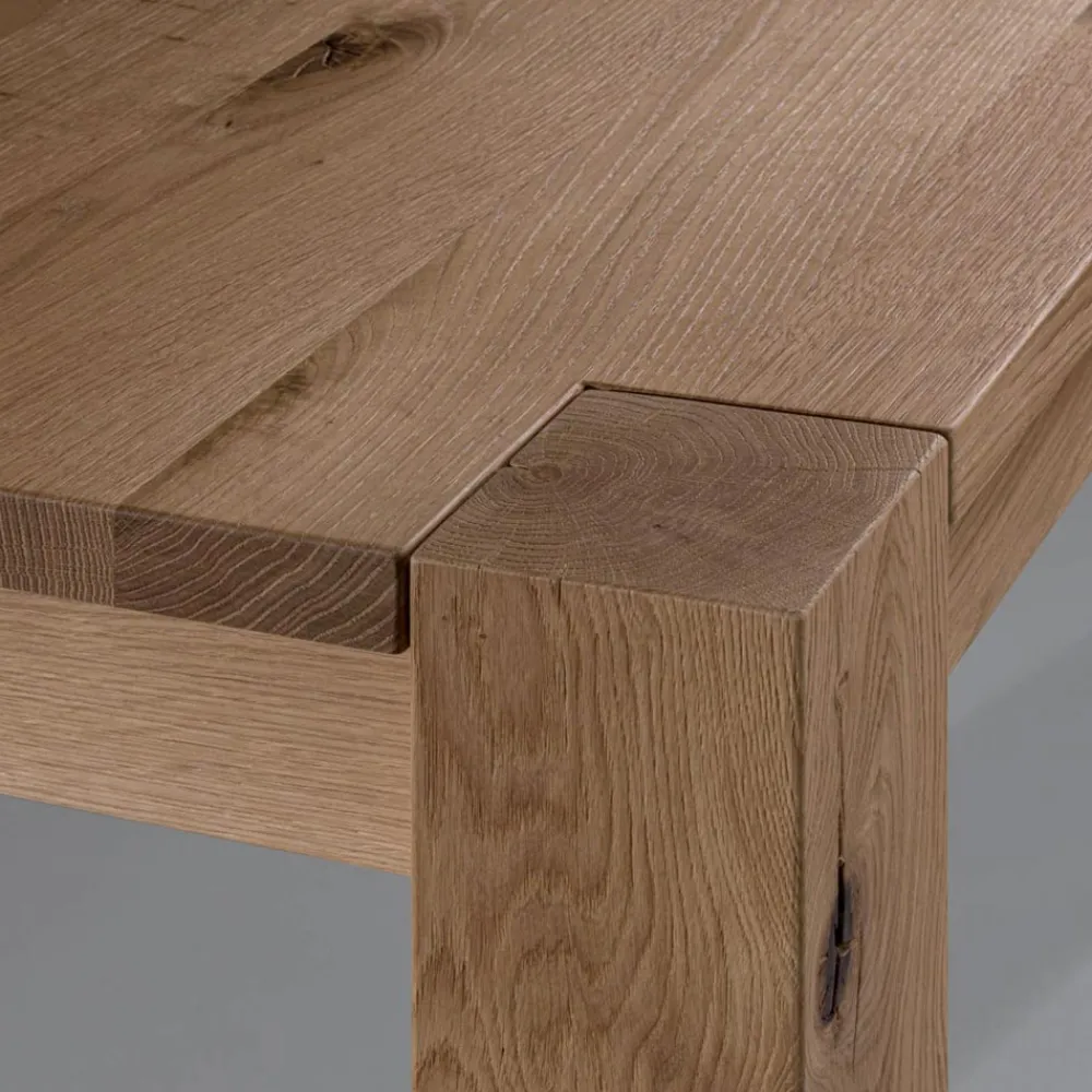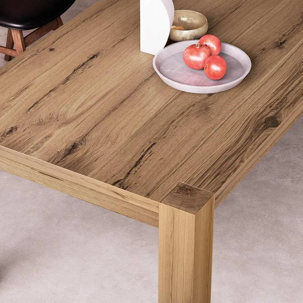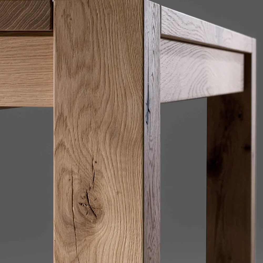 Ausziehbarer Tisch mit Tischplatte aus naturgespaltener Eiche und laminierten, furnierten Beinen , 12 x 12 cm. Erweiterungen sind enthalten .