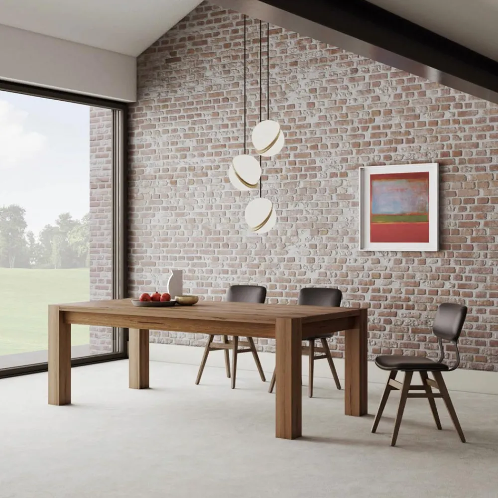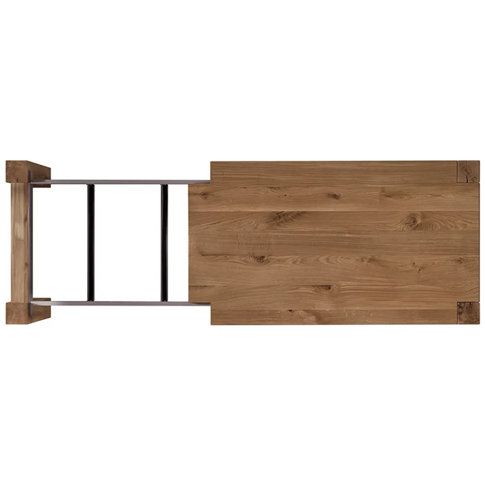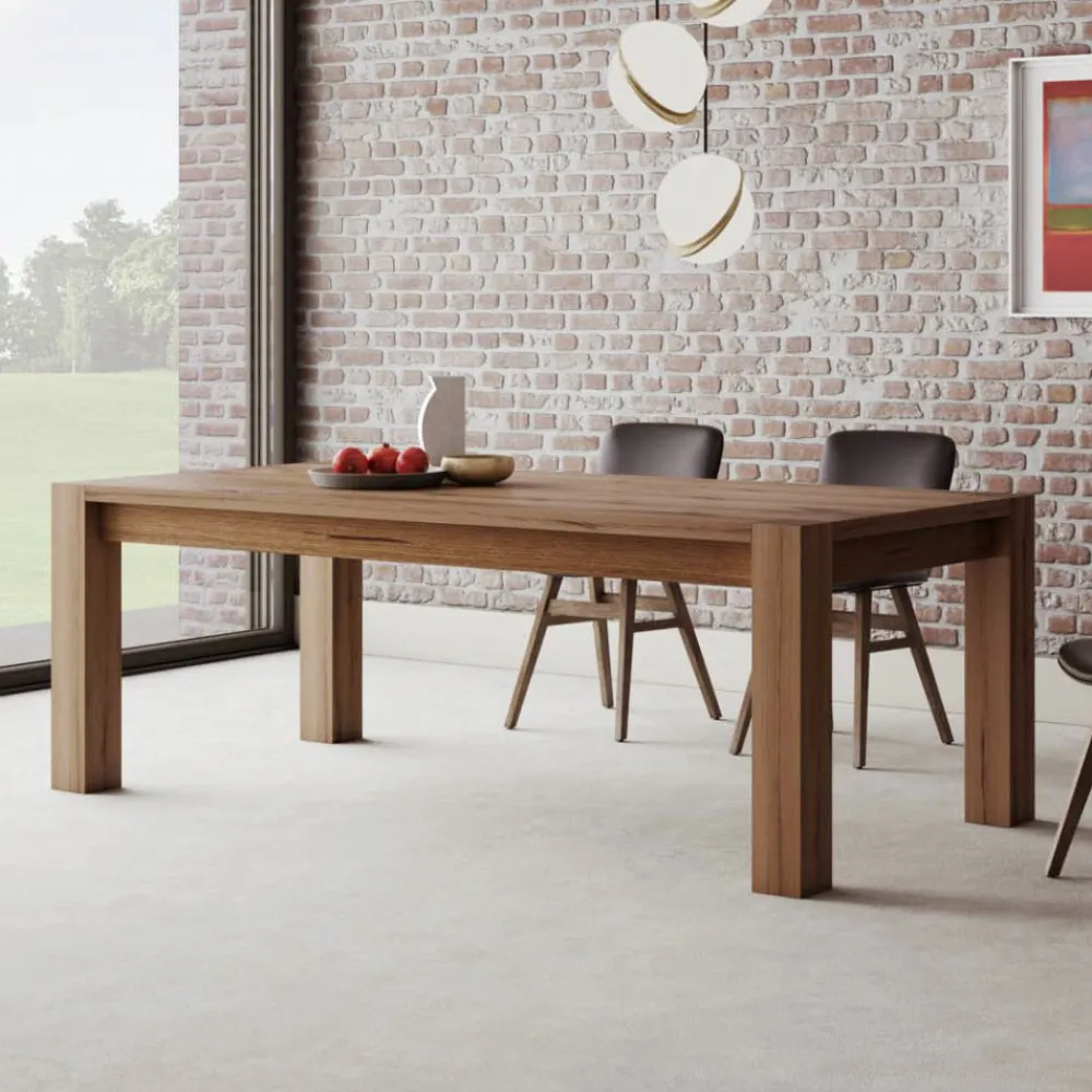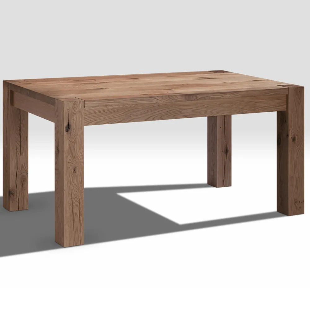 Ausziehbarer Tisch mit Tischplatte aus naturgespaltener Eiche und laminierten, furnierten Beinen , 12 x 12 cm. Erweiterungen sind enthalten .