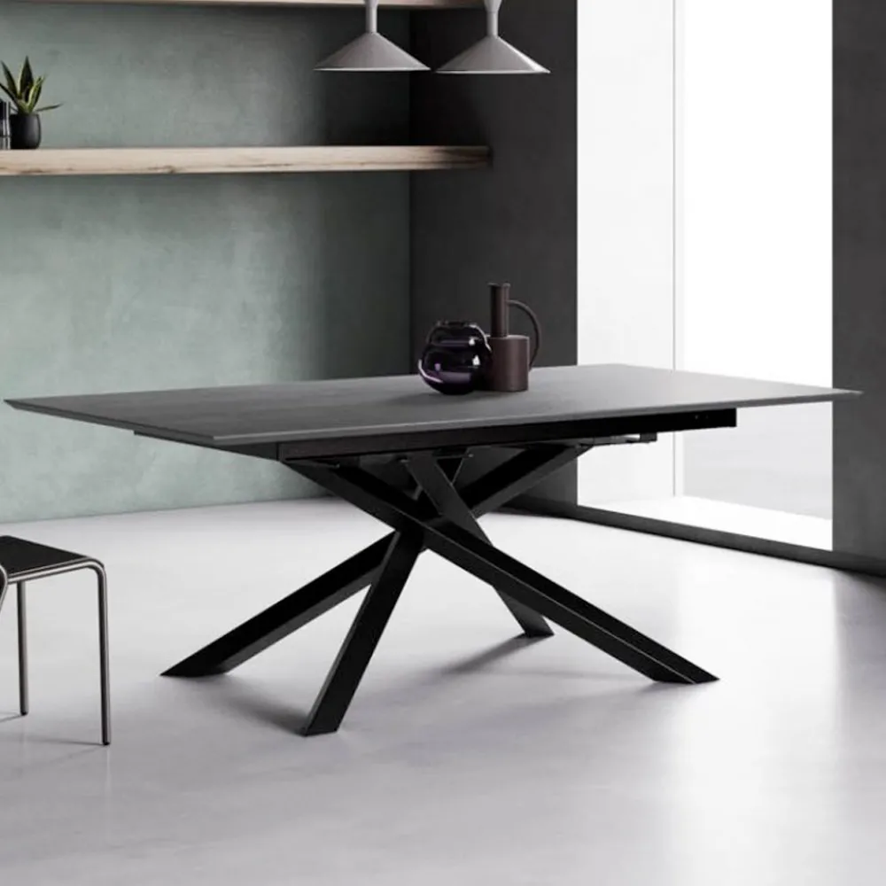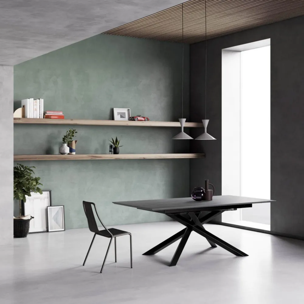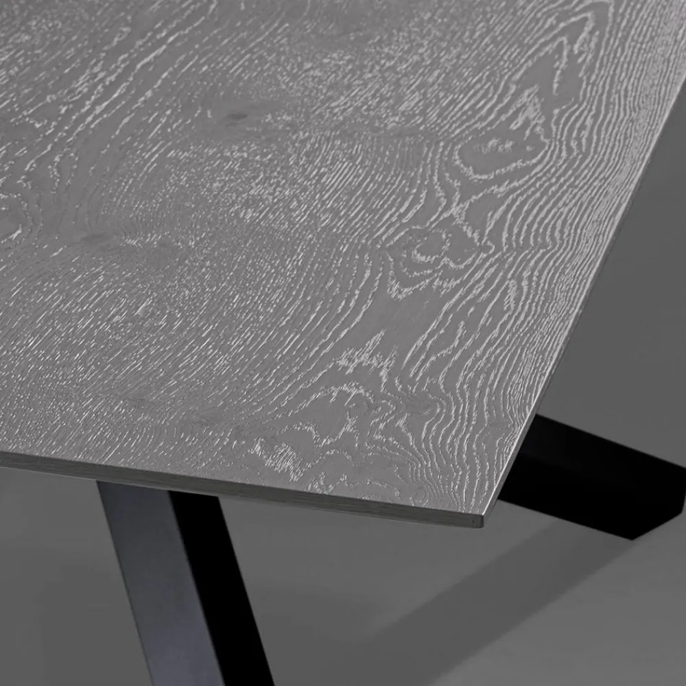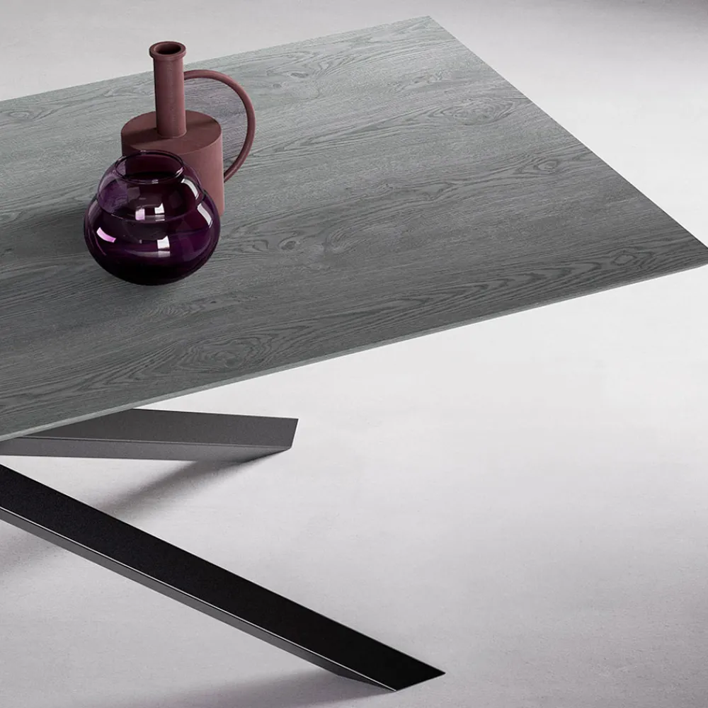 Ausziehbarer Tisch mit Tischplatte aus grauer Eiche und Beinen aus Graphit, hergestellt in Italien.