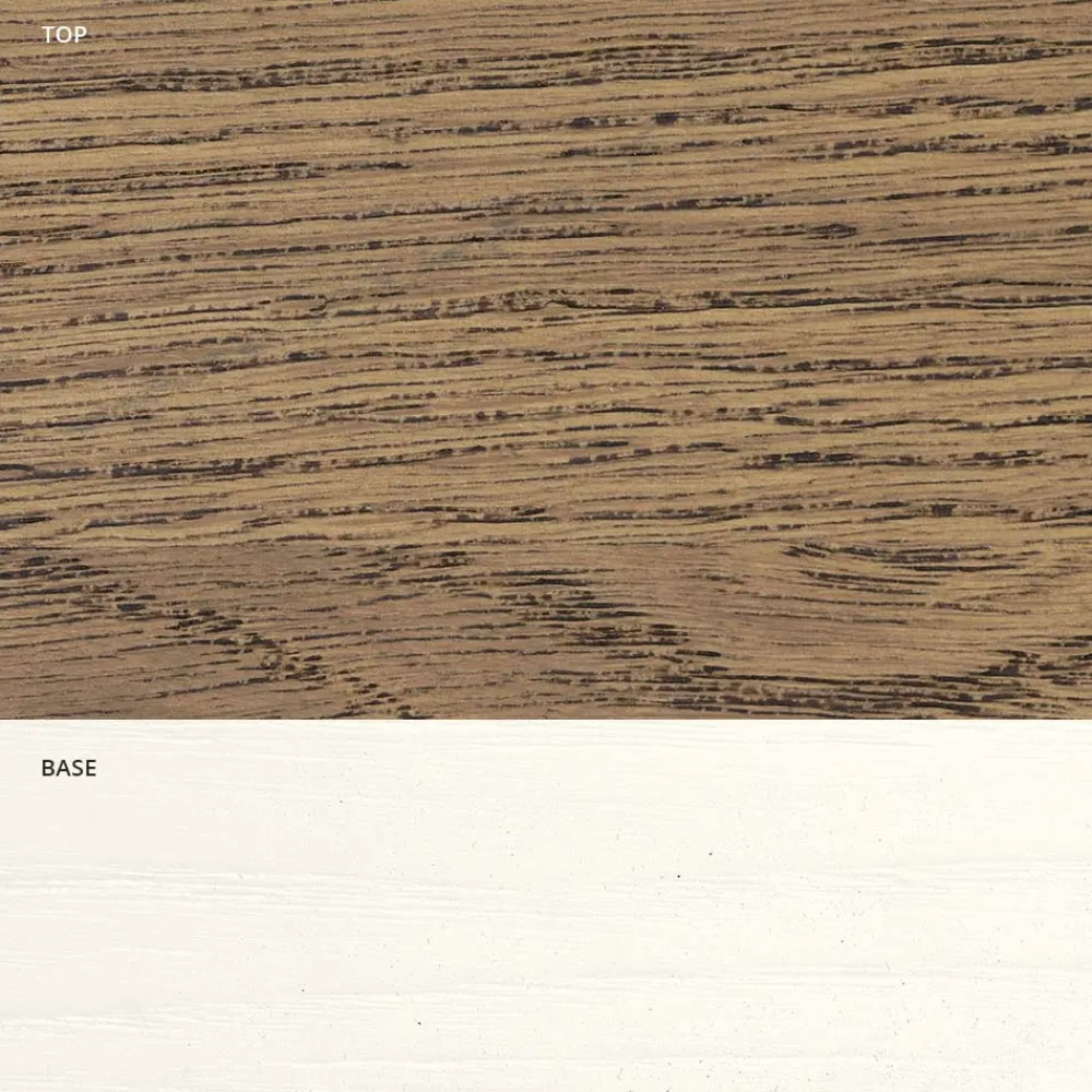 - Platte aus geknoteter Eiche Scotch + lackierte Basis in Weißdornfarbe