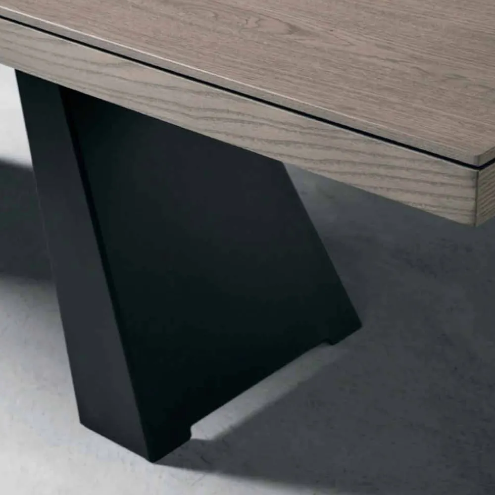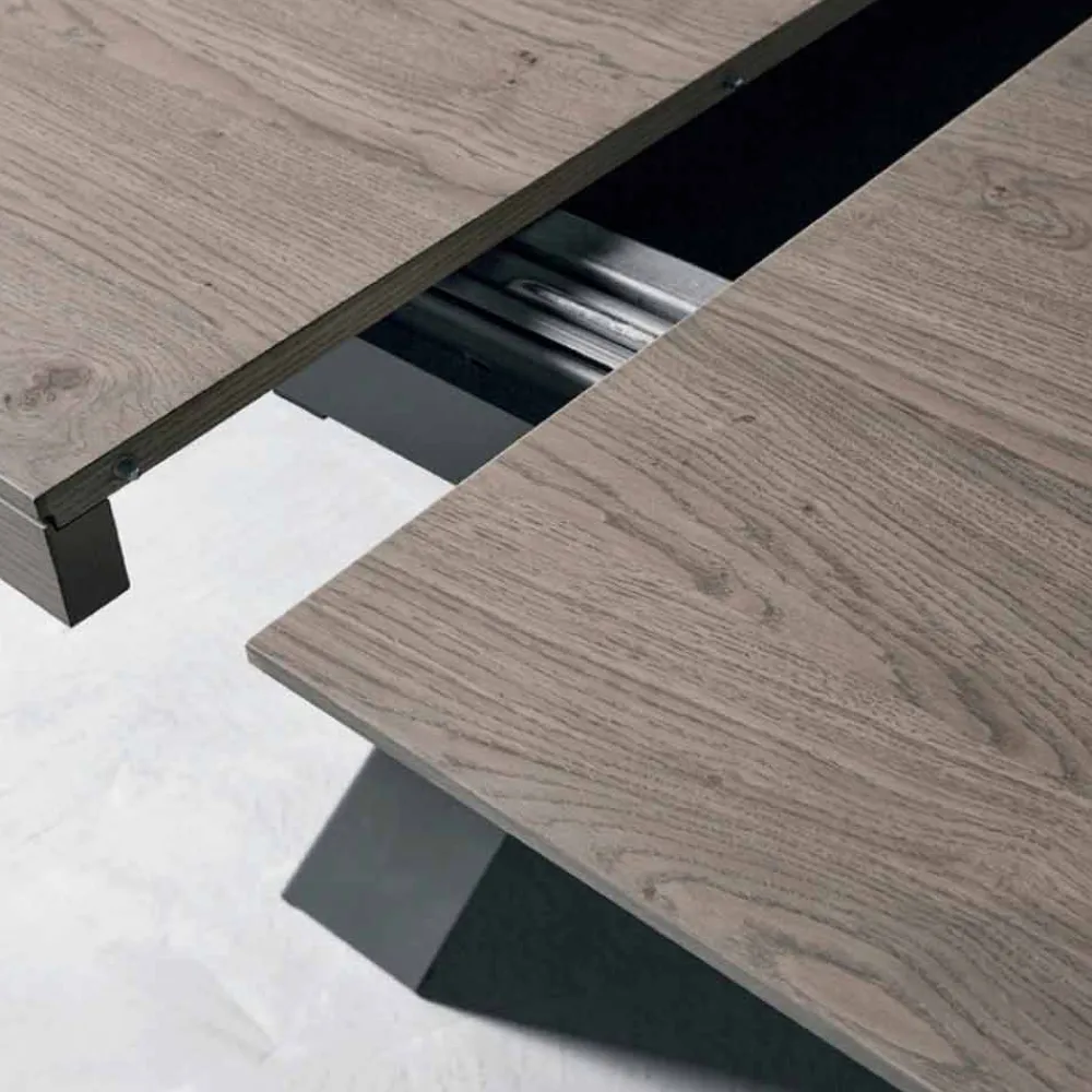 Es verfügt über eine Struktur aus geneigten Paneelen (Stärke 4 mm) aus Metall mit mikrogeprägtem Anthrazit-Finish ; innen ist es mit einem Rahmen aus lackiertem, eloxiertem Aluminium ausgestattet, in dem drei Verlängerungen von jeweils 45 cm untergebracht sind.