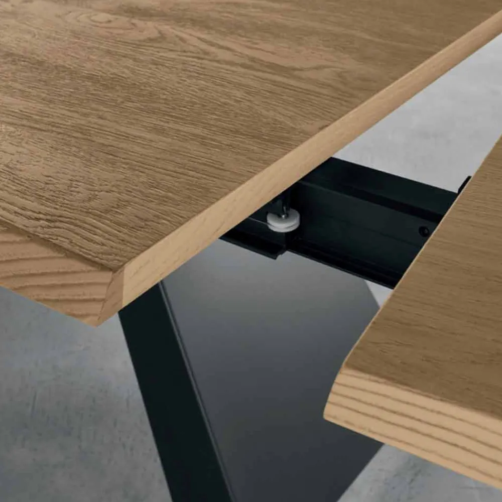 Hergestellt aus einer Struktur aus geneigten Platten (Dicke 4 mm) aus Metall mit mikrogeprägtem Anthrazit-Finish; innen ist es mit einem Rahmen aus lackiertem, eloxiertem Aluminium ausgestattet, der zwei Verlängerungen von je 50 cm beherbergt.