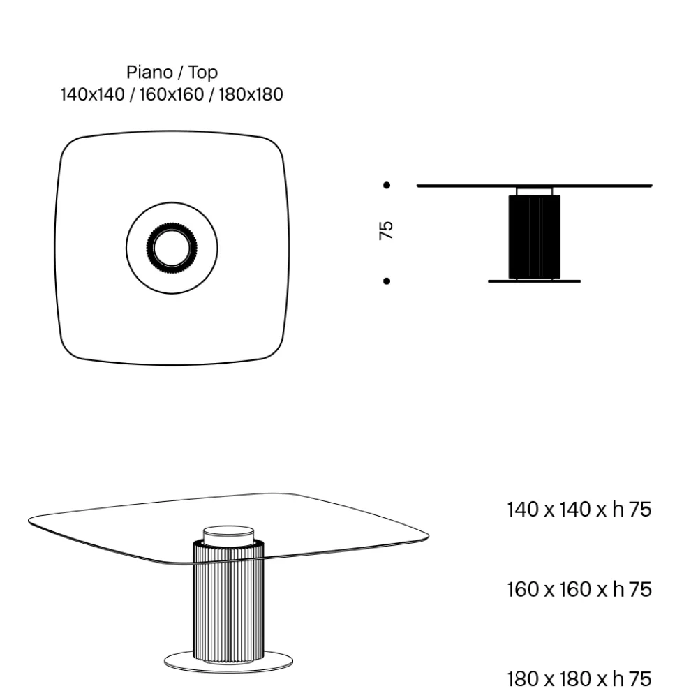 - B 160 x T 160 x H 75 cm;