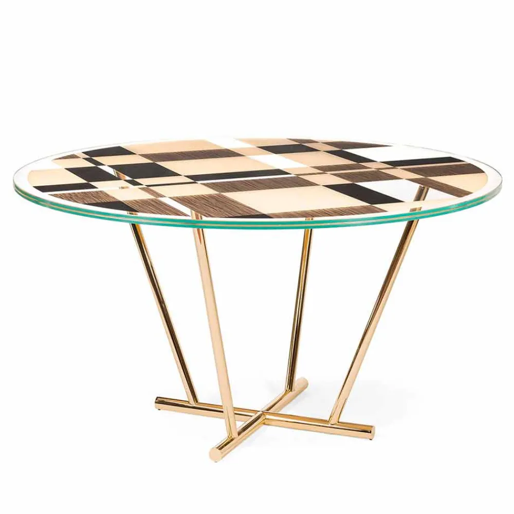 Runder Tisch mit modernem und elegantem Design, inspiriert von den Gemälden des berühmten niederländischen Malers Piet Mondrian und von der Geometrisierung, die seine Werke auszeichnet.