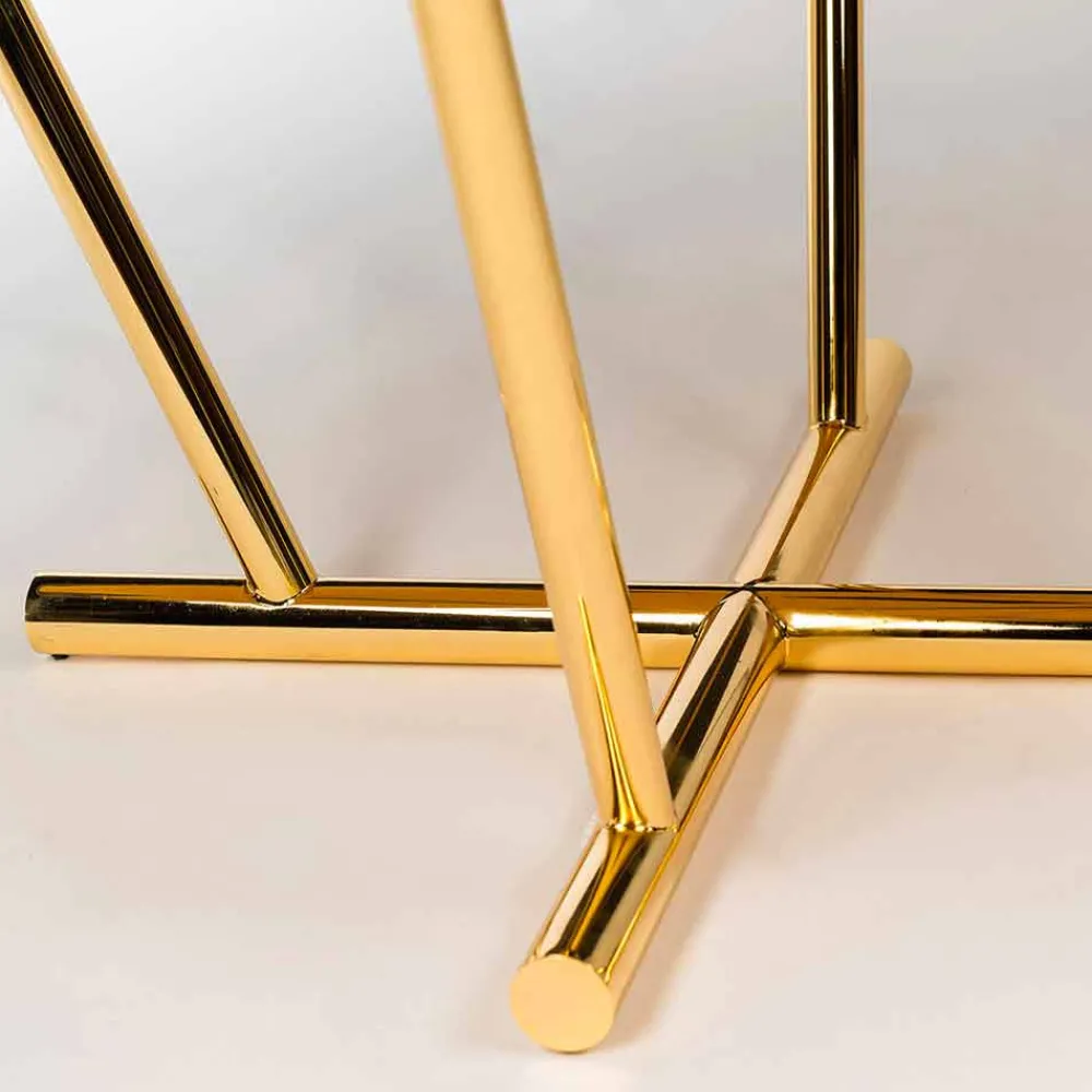 Sein Rahmen besteht aus Metall mit Messing-Finish.