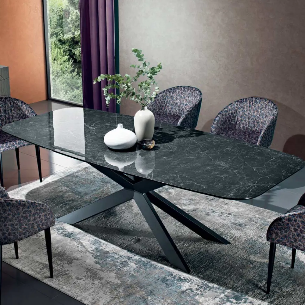 Fester Tisch aus Stahl und Keramik, hergestellt in Italien