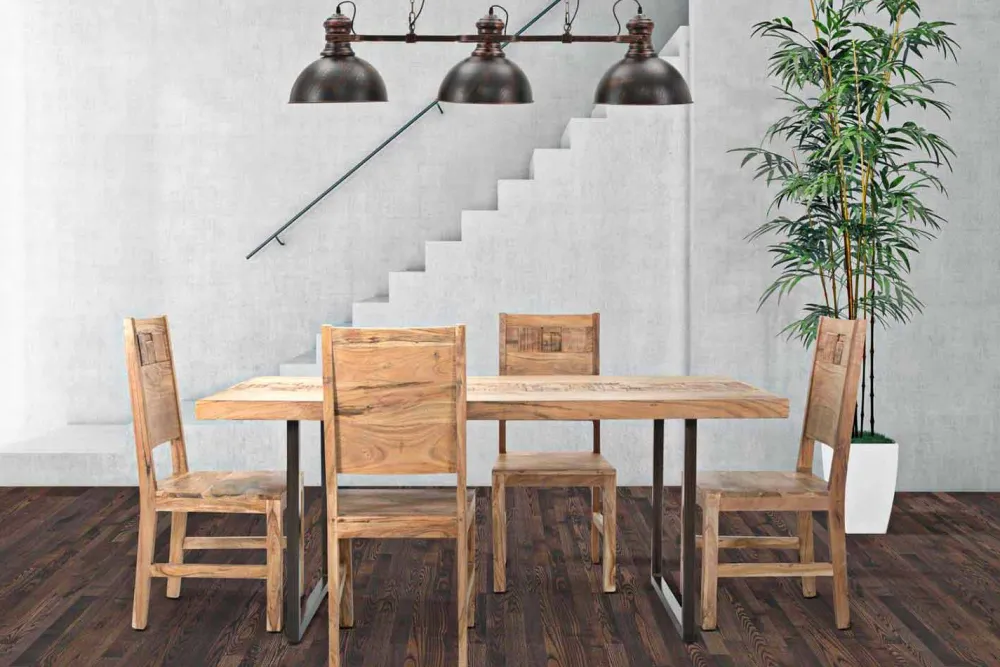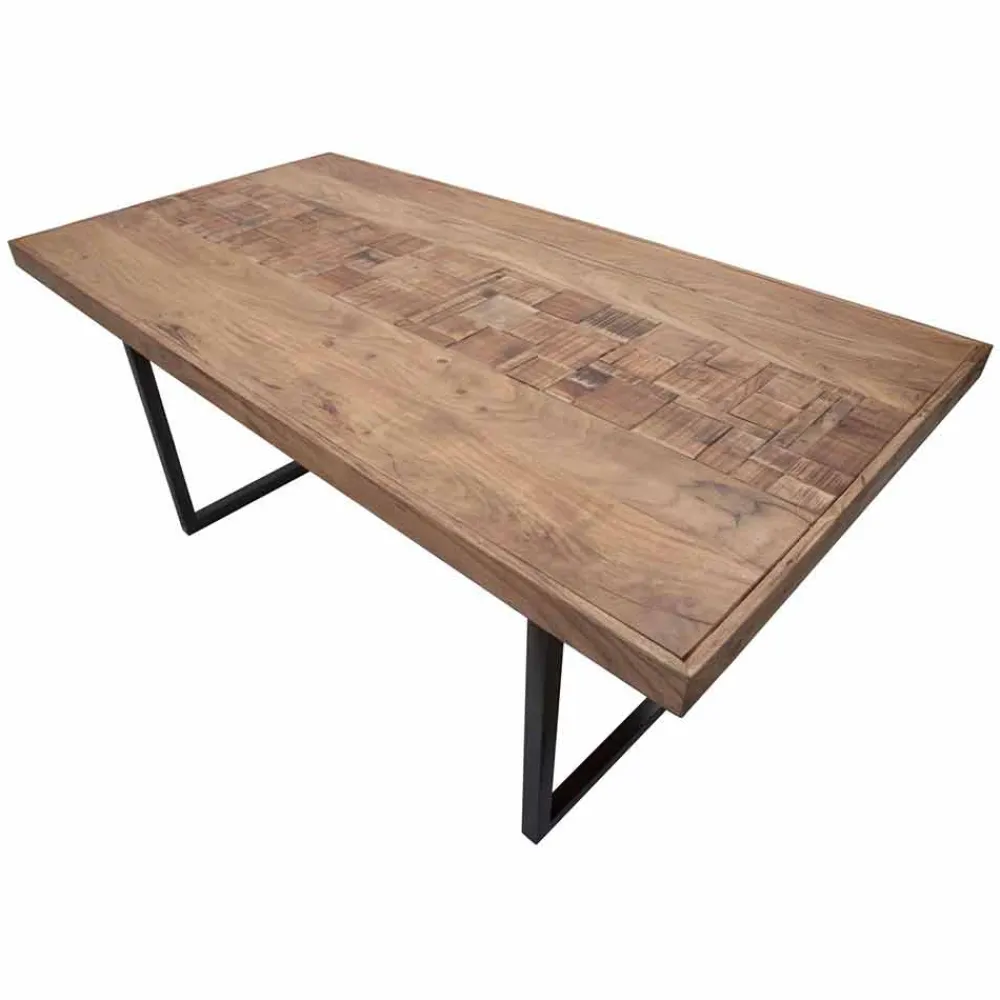 Esstisch aus Akazienholz und Eisen in modernem Design.