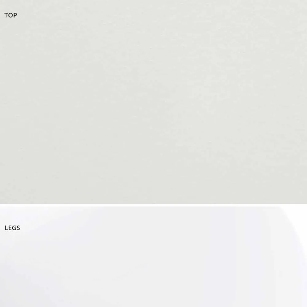 Gekennzeichnet durch eine lackierte Oberfläche aus flüssigem Laminat (Dicke 25 mm) und einem Sockel aus Aluminiumguss, lackiert in glänzendem Weiß oder glänzendem Schwarz.