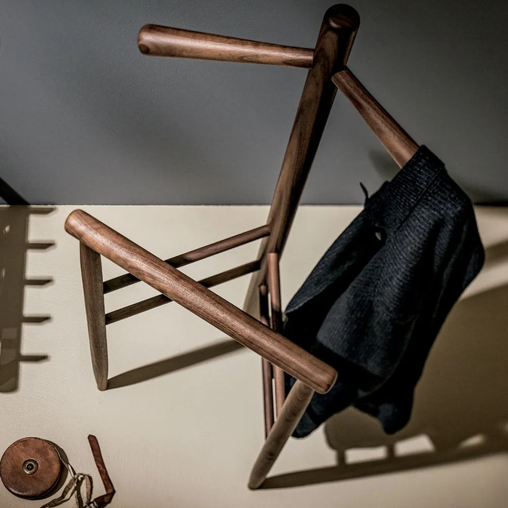 Design Valet Stand handgefertigt aus massivem Walnuss- oder Eschenholz Made in Italy.