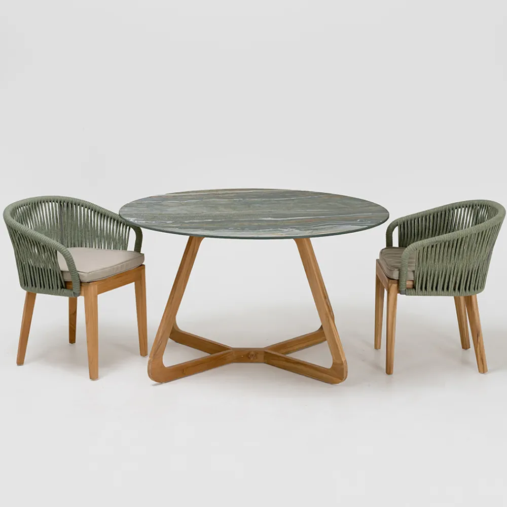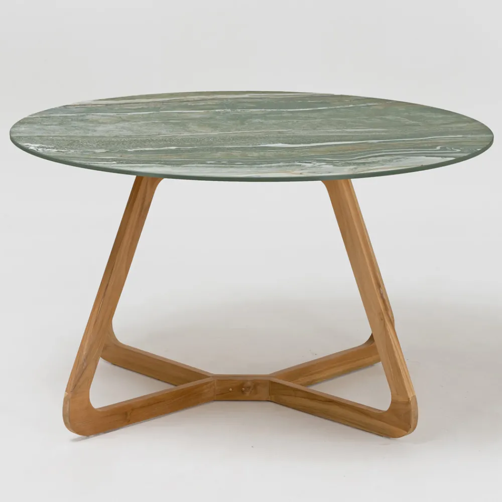 Tisch für den Innen- und Außenbereich aus Keramik und Teakholz Made in Italy