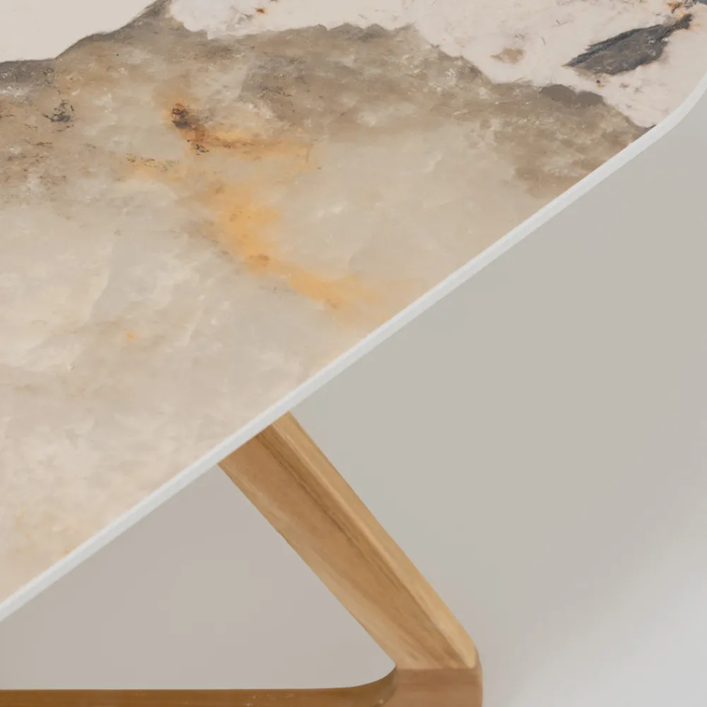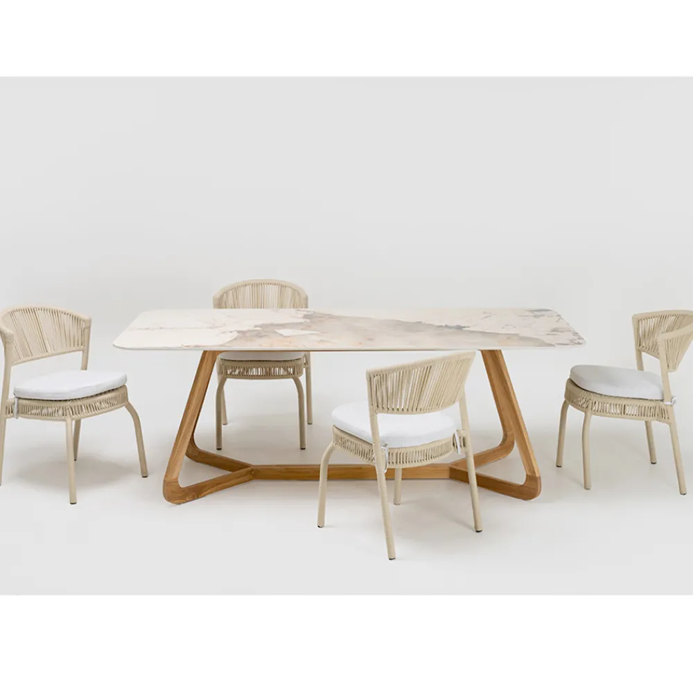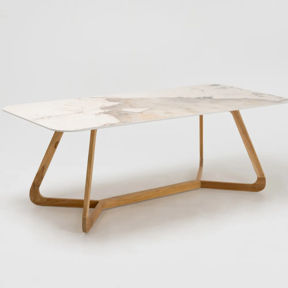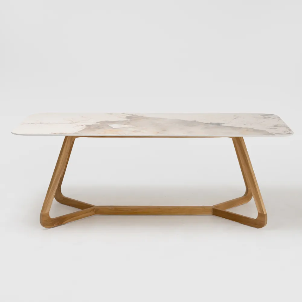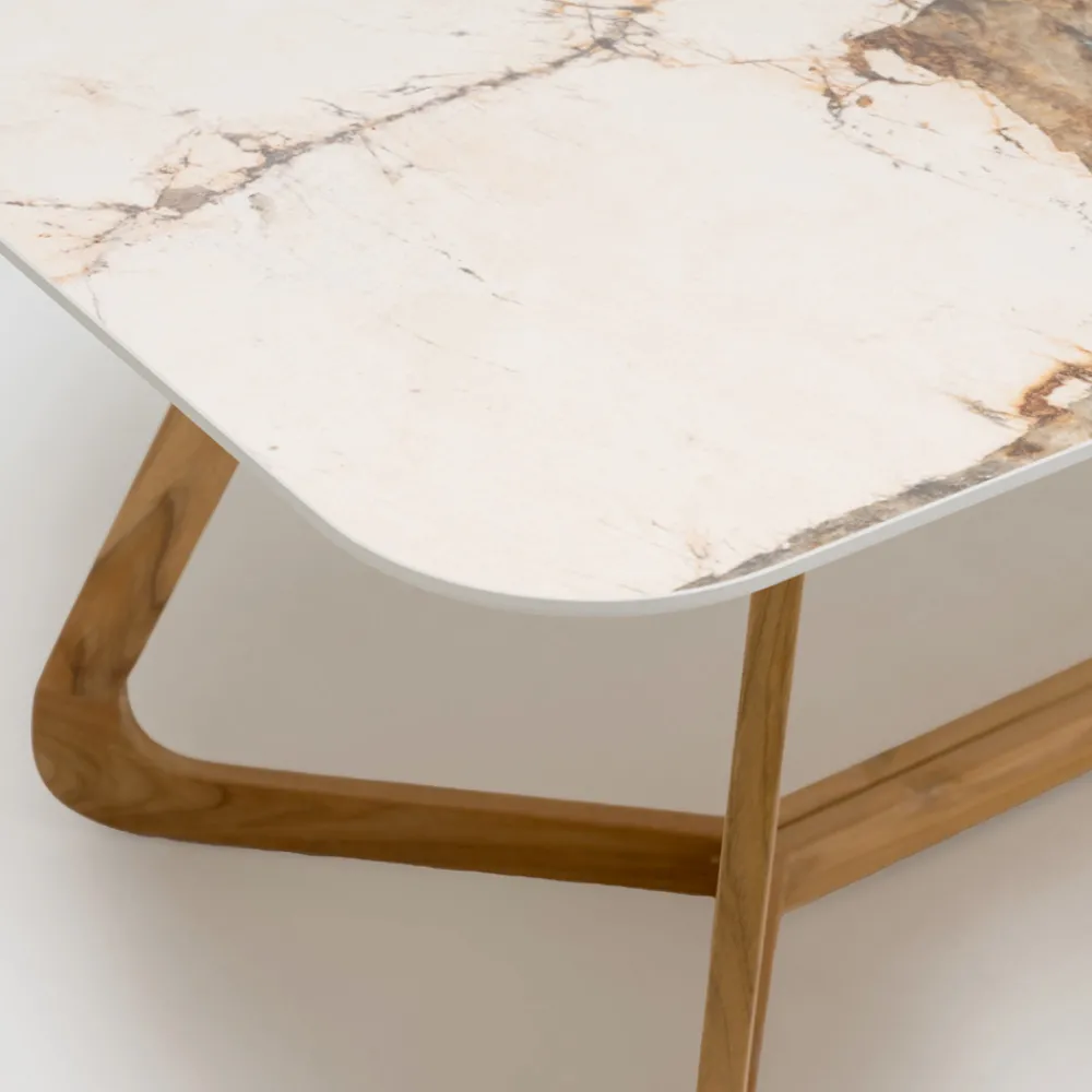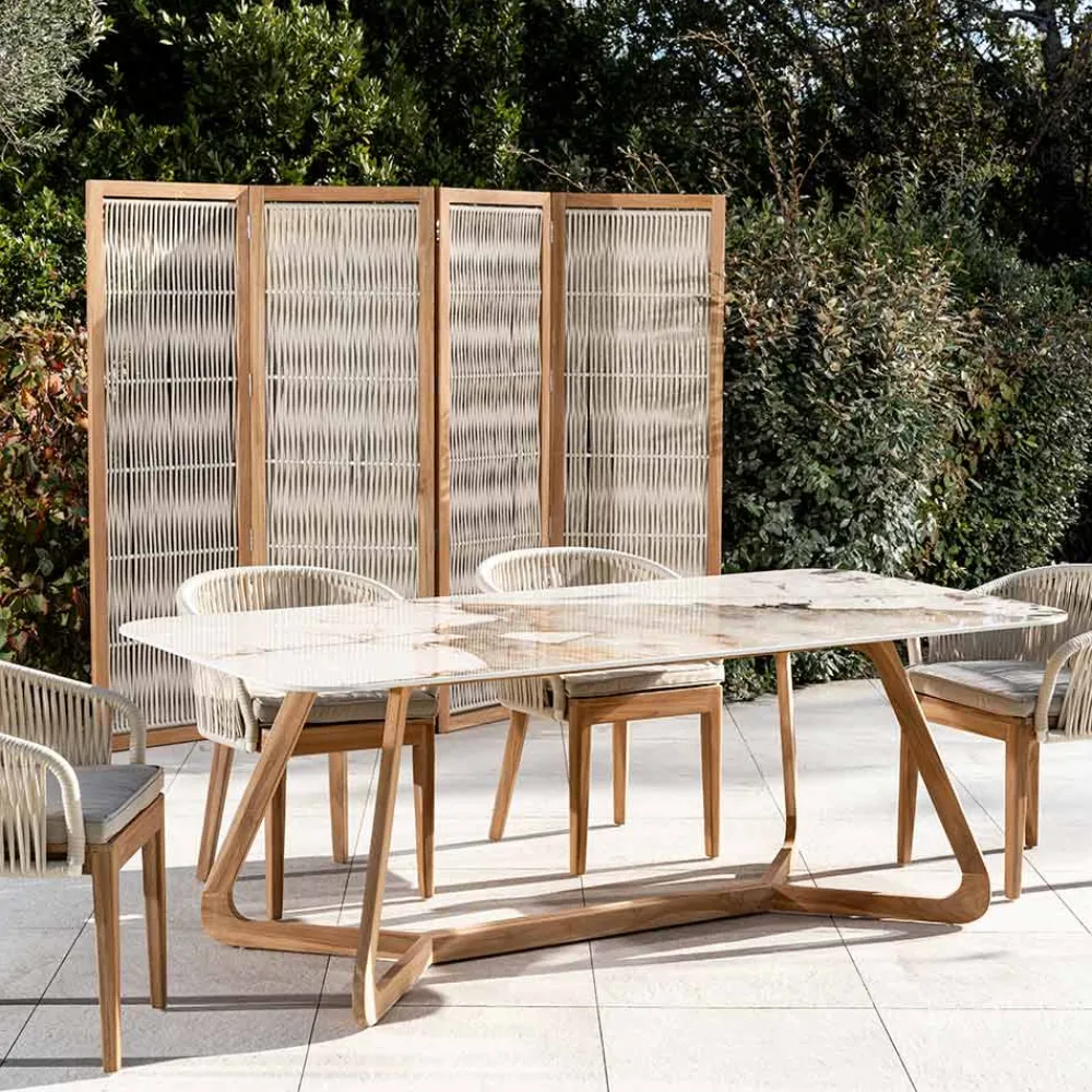 Tisch für den Innen- und Außenbereich aus Keramik und Teakholz Made in Italy