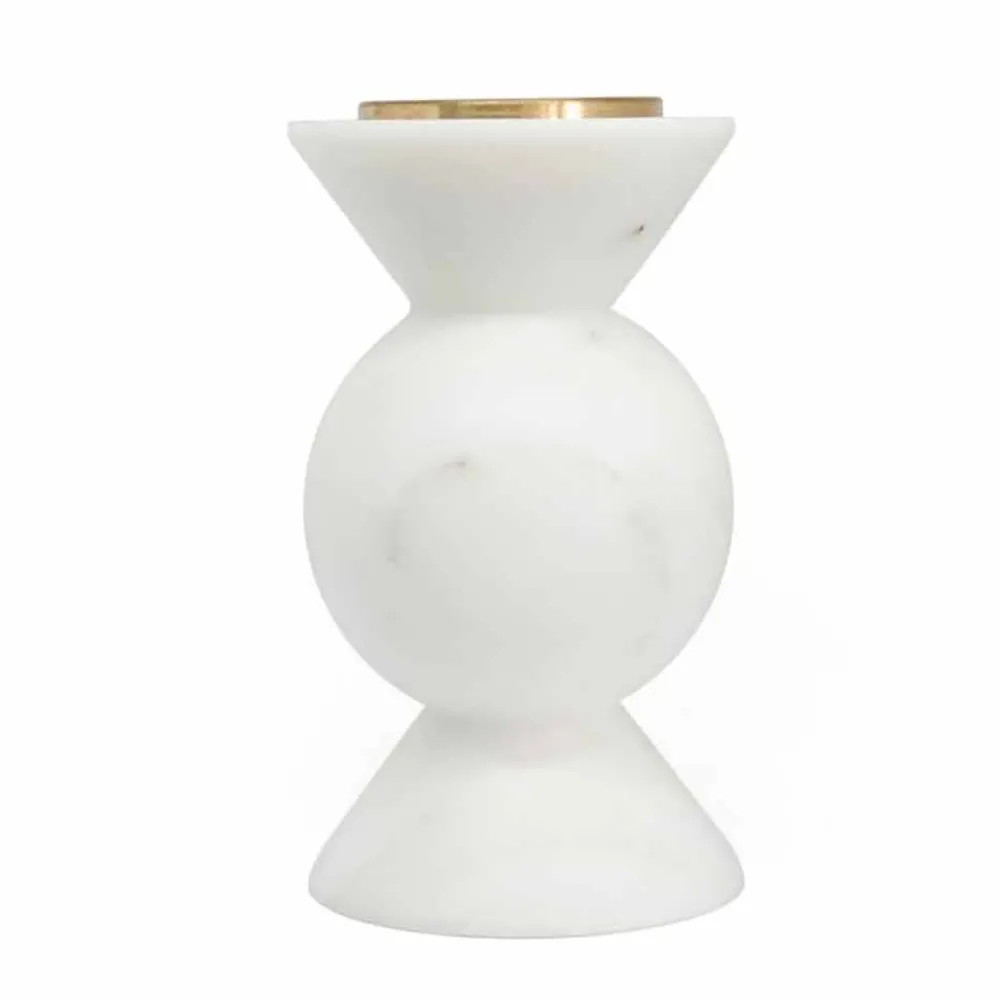 Niedriger Kerzenhalter aus hochwertigem weißem Carrara-Marmor und Messing . Es ist als Unikat zu betrachten, da sich jeder verwendete Marmorblock von den anderen für Adern und Schattierungen unterscheidet. Der Marmor stammt aus dem Steinbruch Poggio Silvestre, einer Quelle für erstklassigen weißen Marmor, der seit dem letzten Jahrhundert klassifiziert wurde.