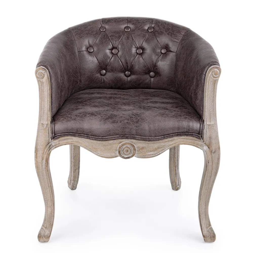 Sessel aus Gummibaumholz und Sitz aus Polyester.