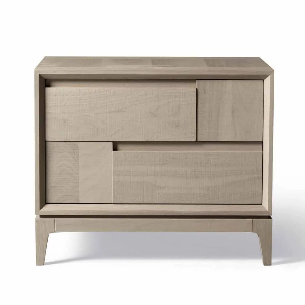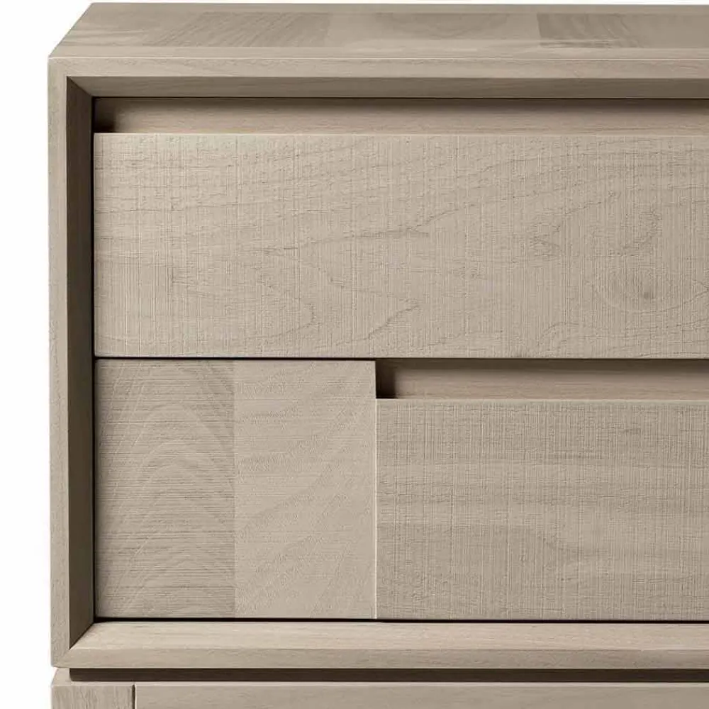 Innovatives und originelles Design dank ausgefeilter Verarbeitung der Schubladen. Die Linien, die die Oberfläche mit abwechselnden rechteckigen Elementen charakterisieren, geben den Oberflächen eine Bewegung.