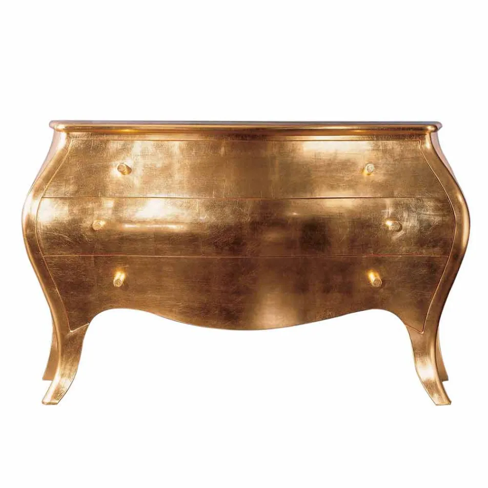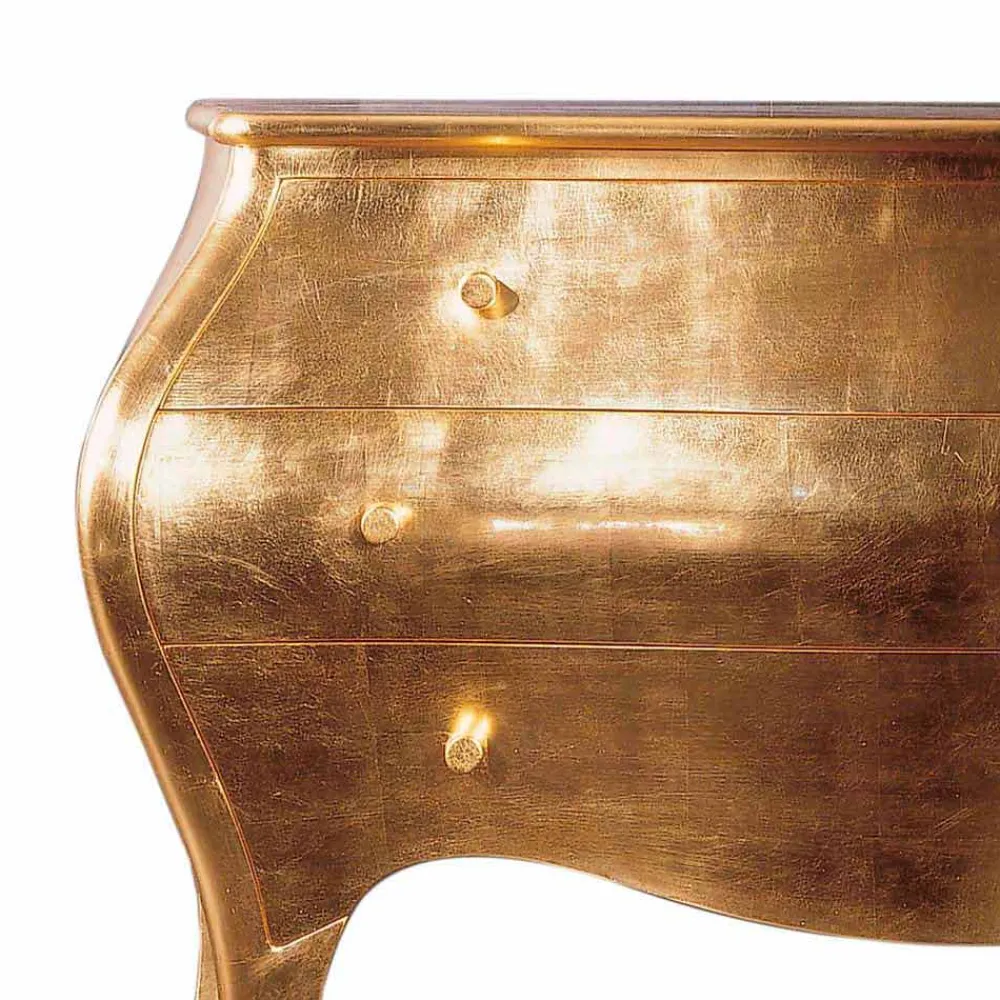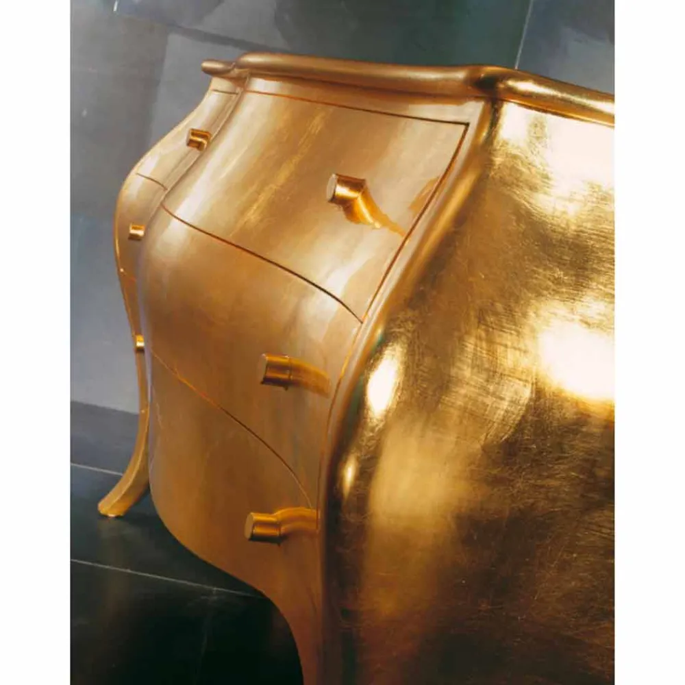 Giotto ist eine Luxuskommode mit Schubladen aus massivem Lindenholz und mit Metallschienen ausgestattet. Das edle Blattgold-Finish unterstreicht die Qualität dieser Schlafzimmermöbel, die vollständig in Italien hergestellt werden.