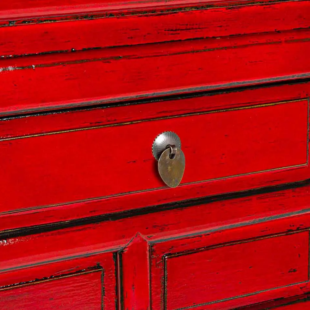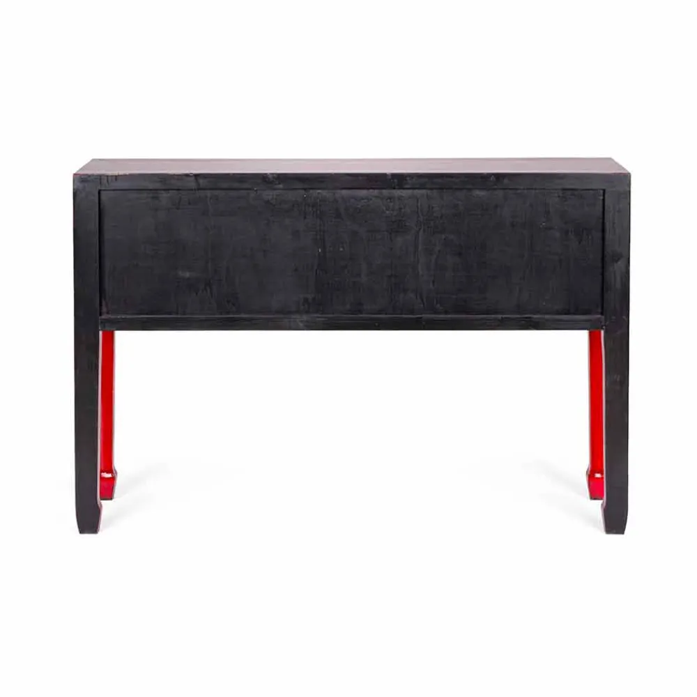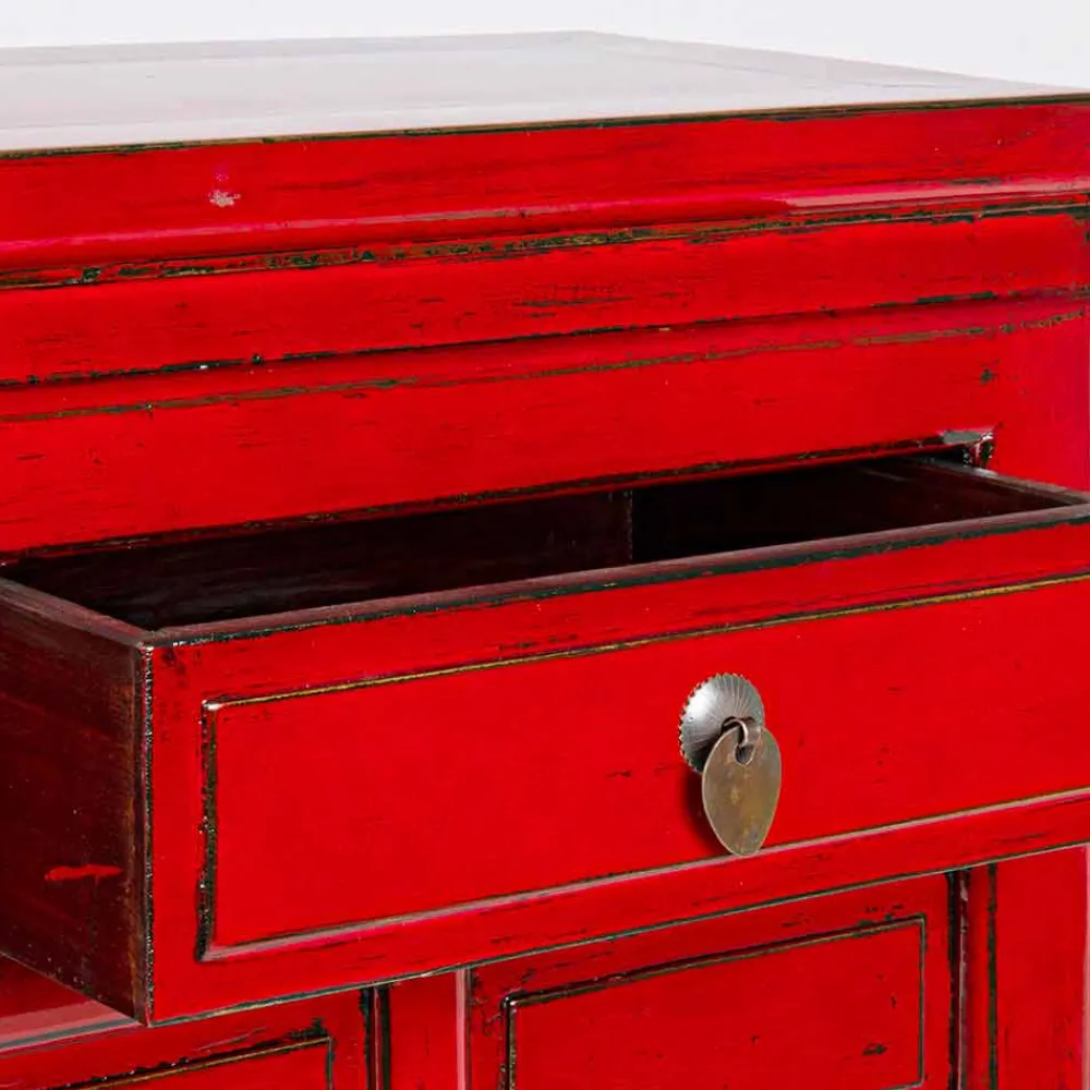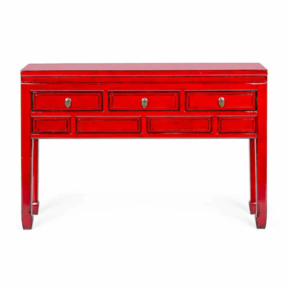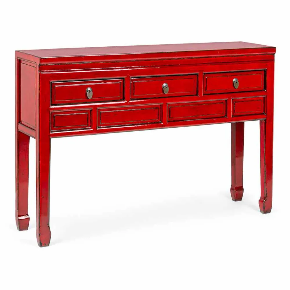 Roter Konsolentisch aus Ulmenholz mit 3 Schubladen im Vintage-Design.