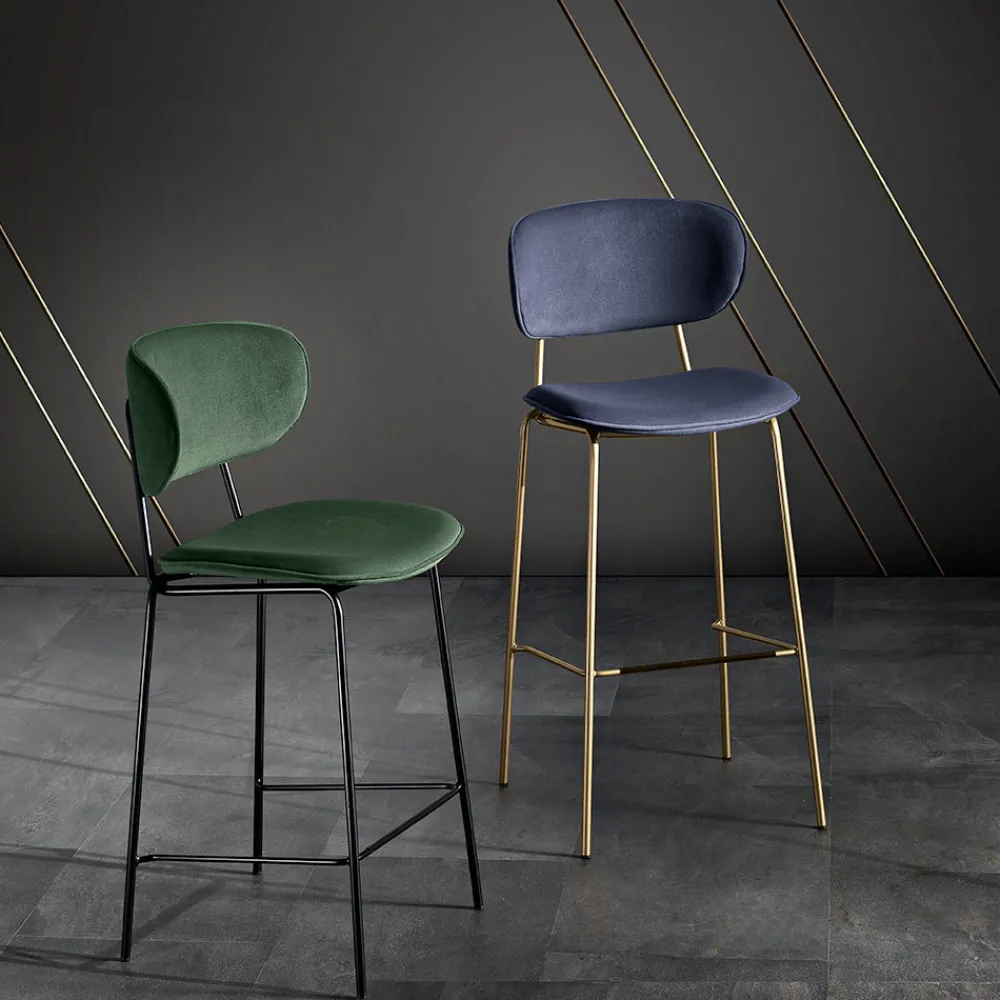 Hocker mit Sitz und Rückenlehne aus Stoff und Metallstruktur , komplett in Italien hergestellt.
