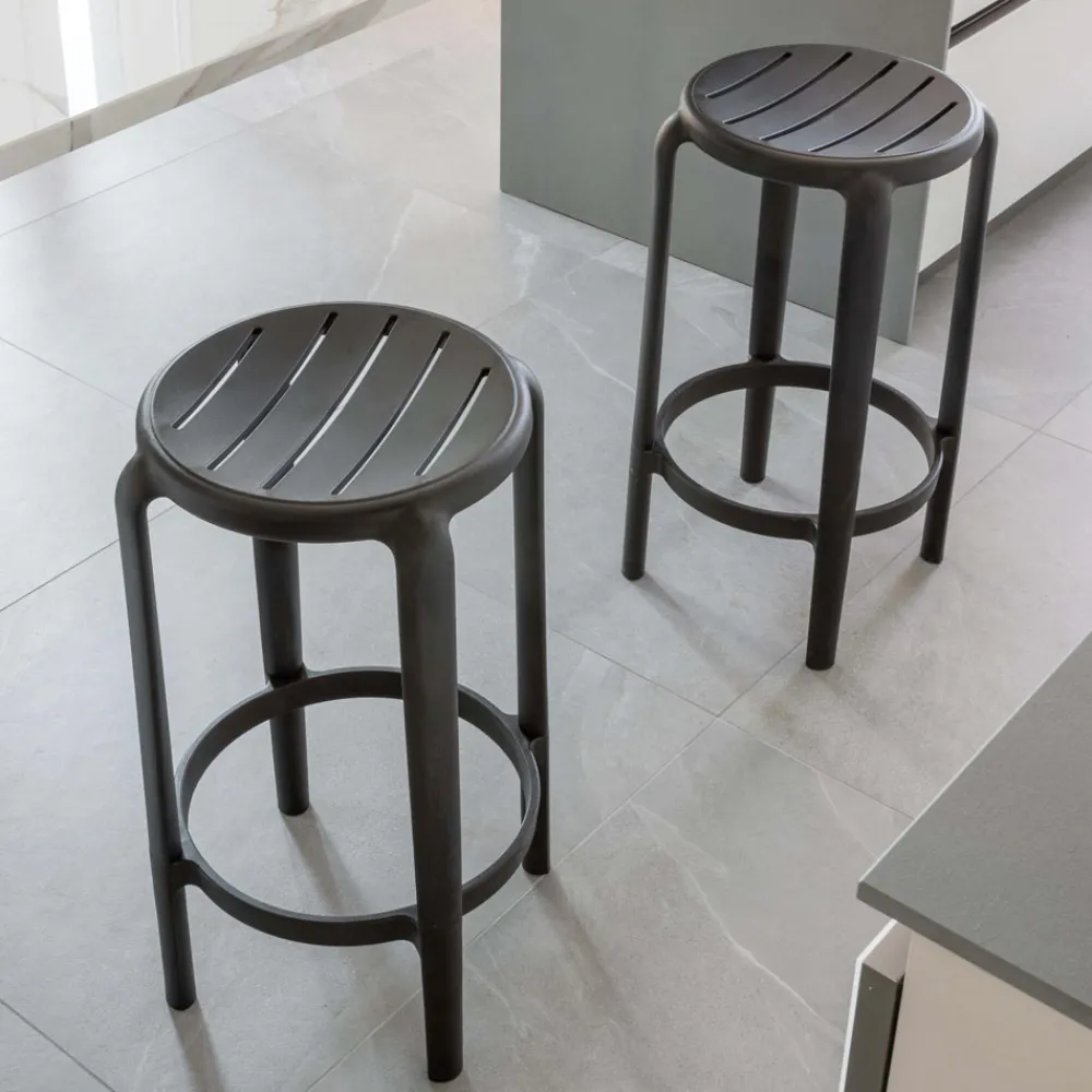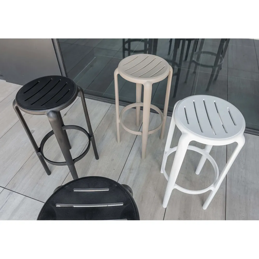 Innen- und Außenhocker aus glasfaserverstärktem Polypropylen.