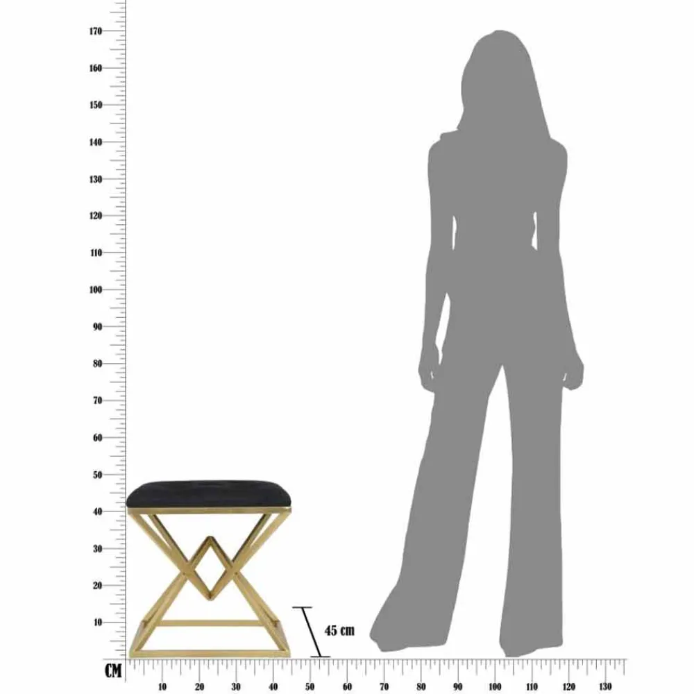 Moderner quadratischer Hocker aus Eisen und Stoff.