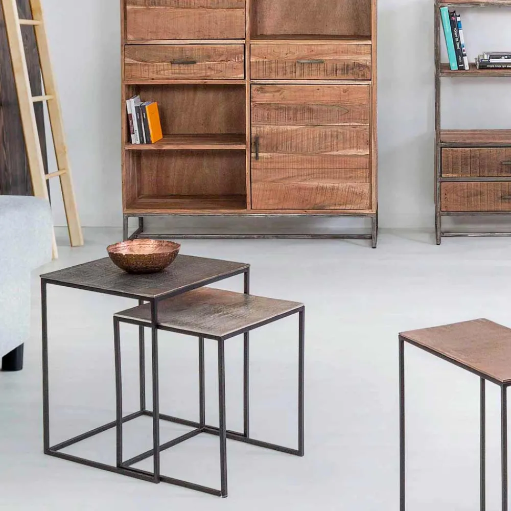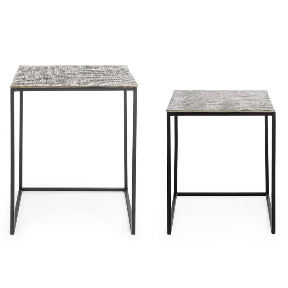 Paar quadratische Couchtische aus Aluminium und Stahl.