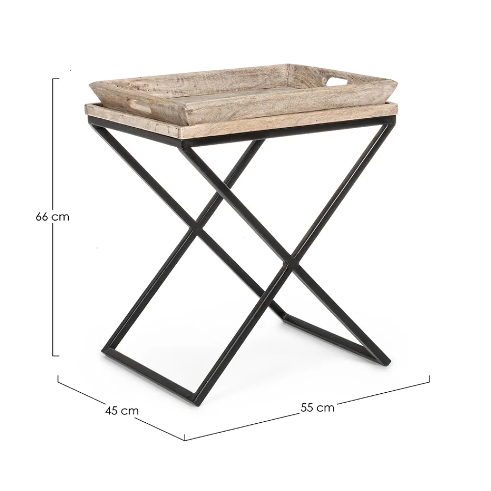 Couchtisch aus Stahl und Mangoholz mit Tablett, 3 Größen.