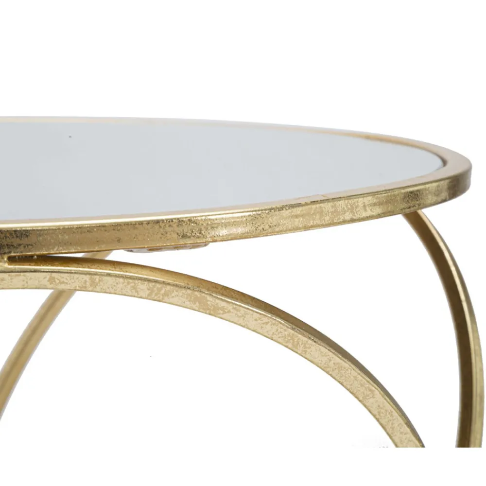 Runder Couchtisch mit goldener Eisenstruktur und transparenter Glasplatte . Ein Objekt mit einem einfachen und vielseitigen Design, das entworfen wurde, um Lounges im eleganten Stil mit Charakter und Persönlichkeit für ein exklusives und raffiniertes Ergebnis zu vervollständigen. Seine Besonderheit ist die wunderbare geometrische Textur, die die gesamte Struktur charakterisiert und ihren Wert und ihre Einzigartigkeit zusammen mit der raffinierten Glasplatte erhöht, die ihre anspruchsvolle Ästhetik unterstreicht.