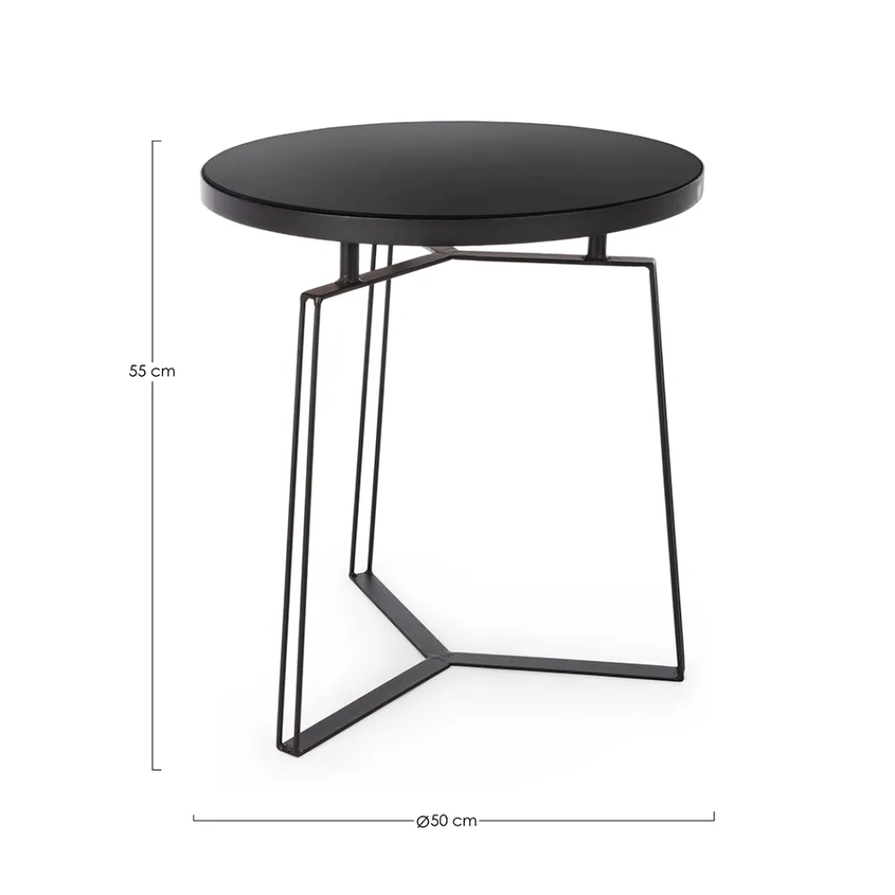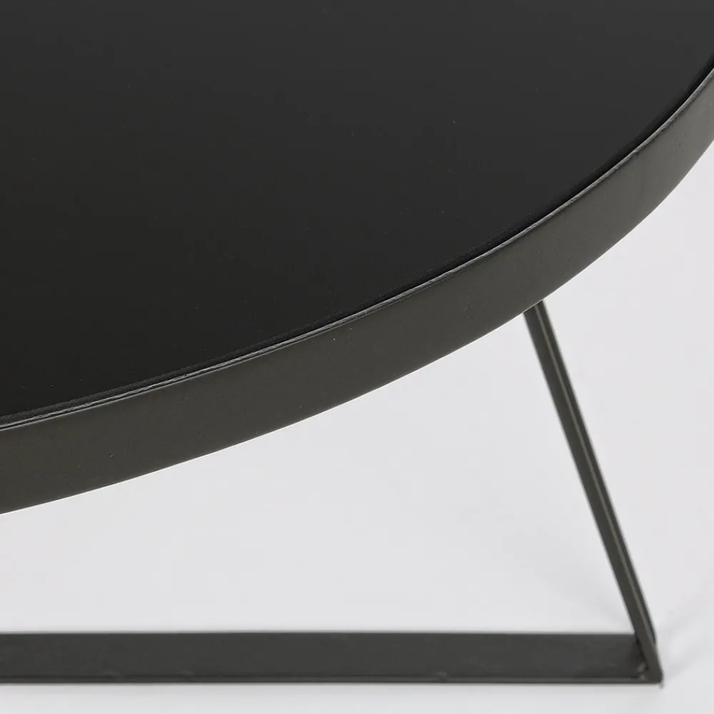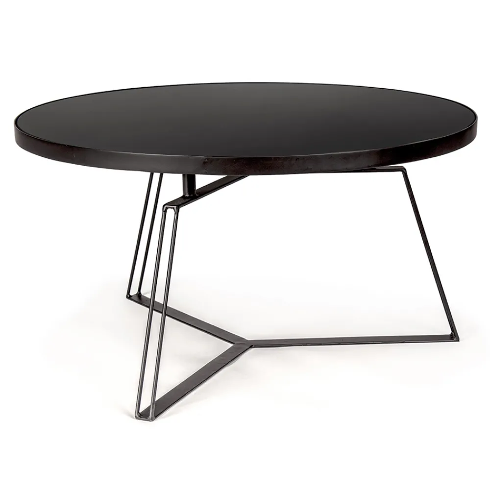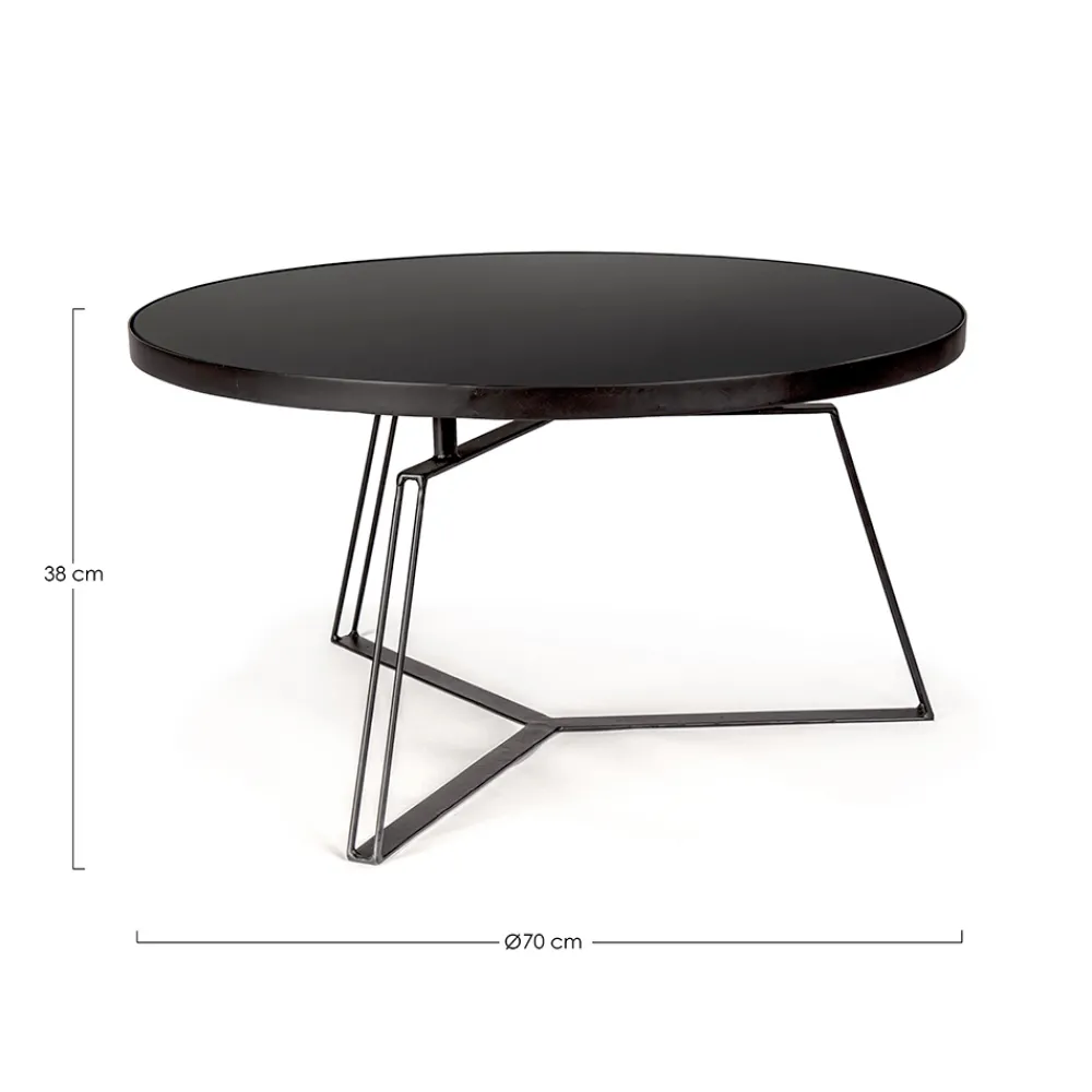 Runder Couchtisch aus schwarzem Stahl und Glasplatte, 2 Größen.