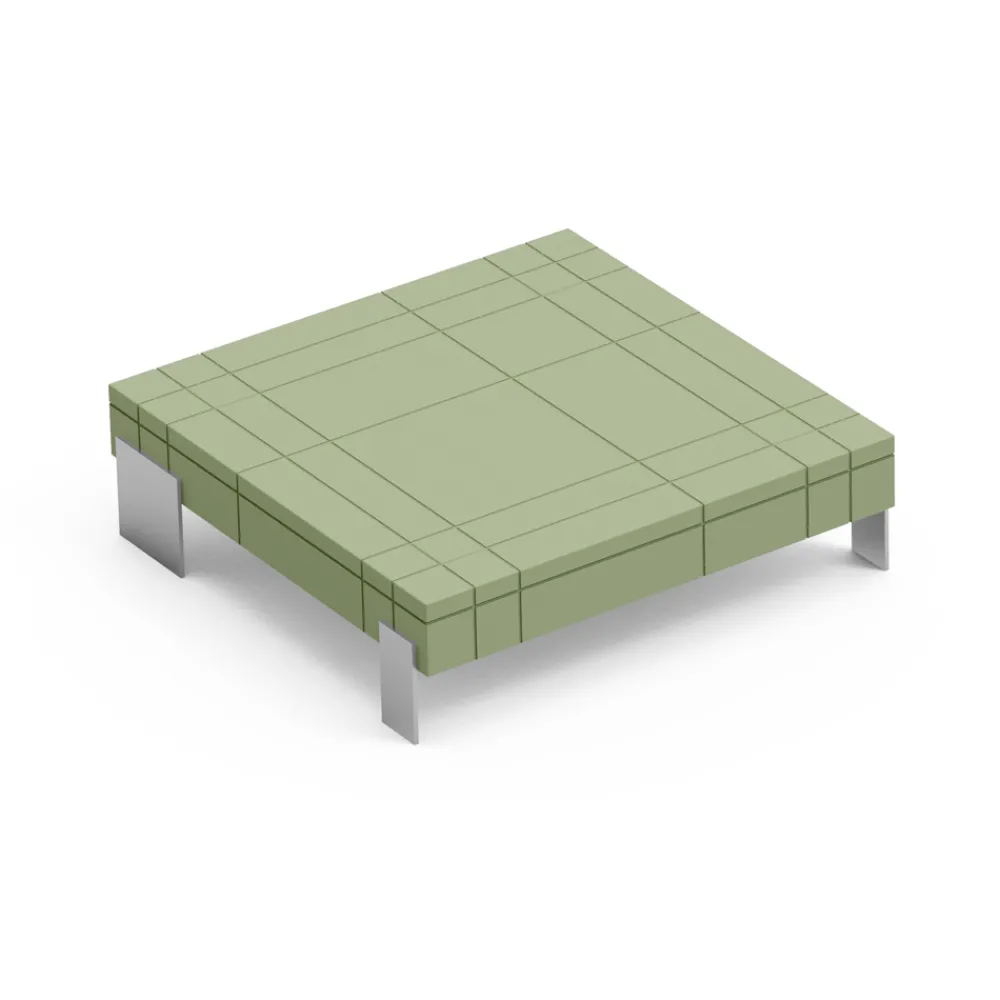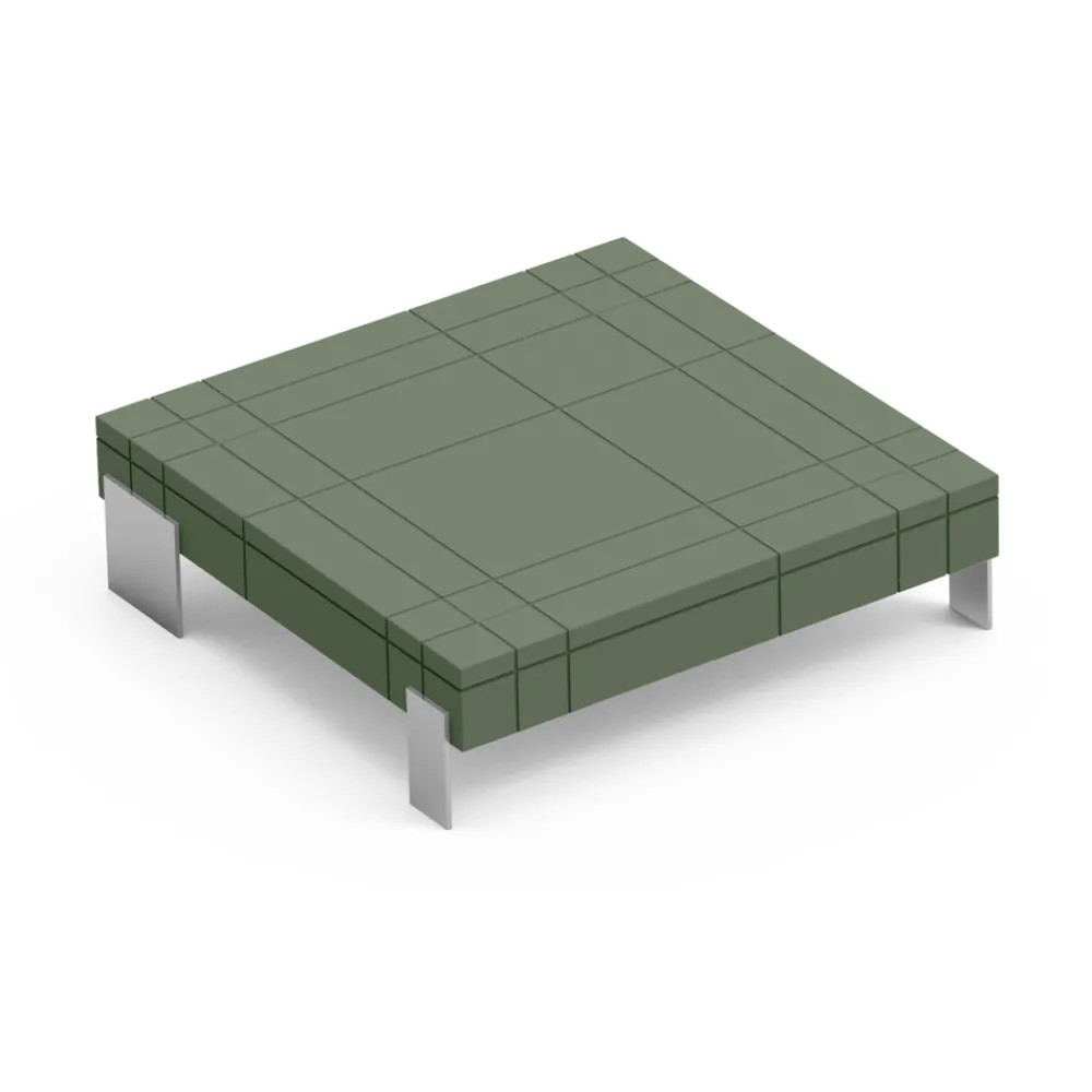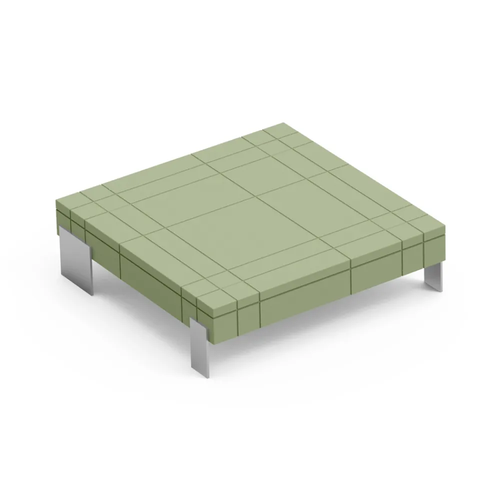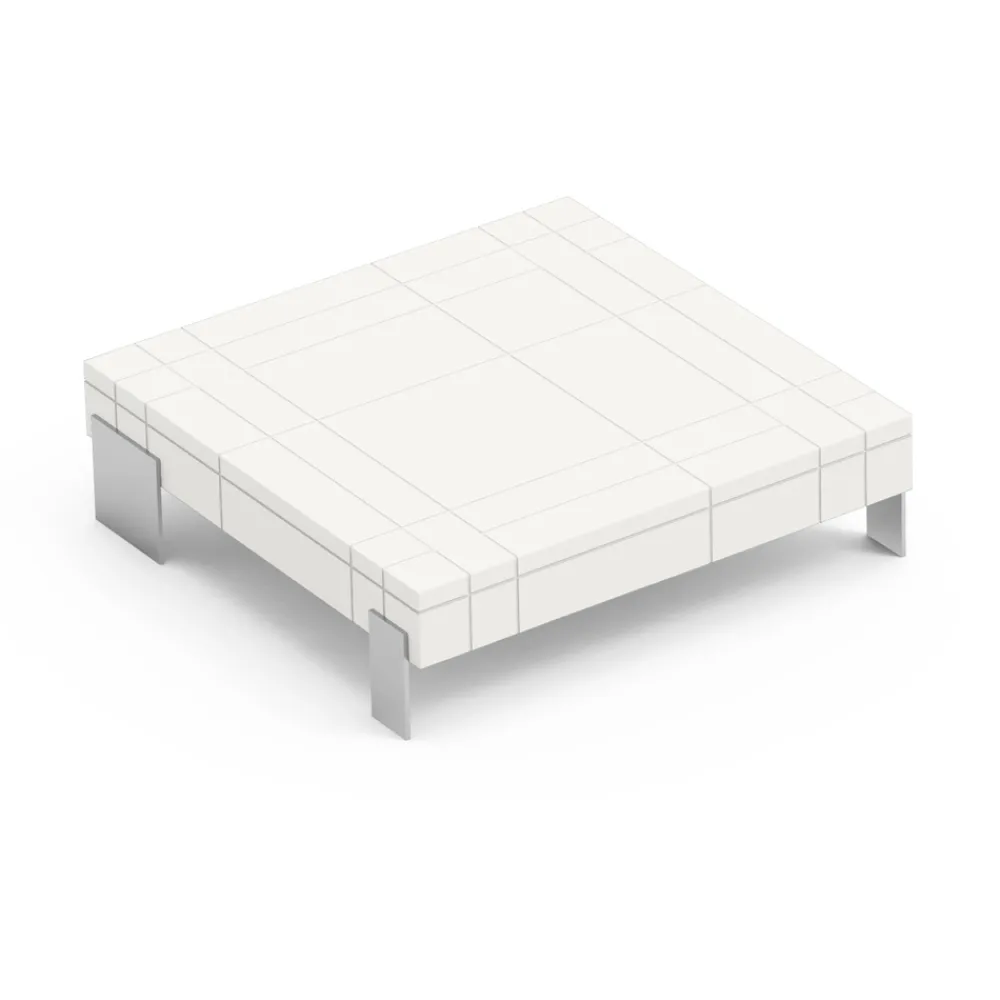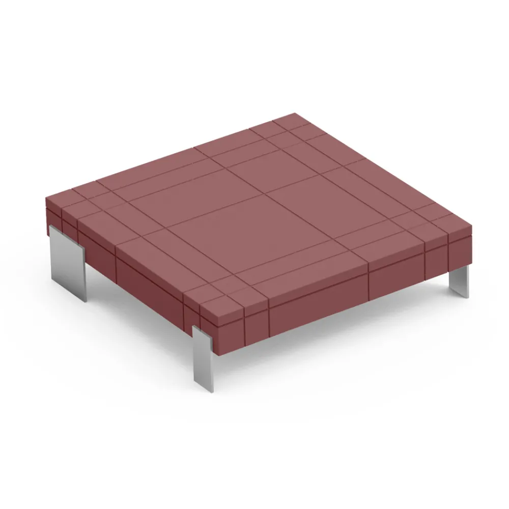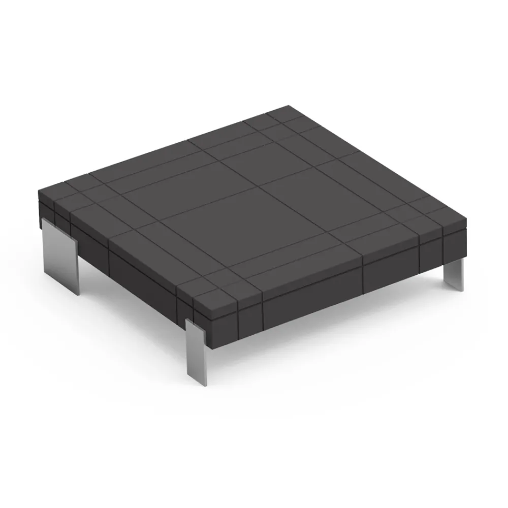 Couchtisch mit Polyethylenstruktur und Metallfüßen.