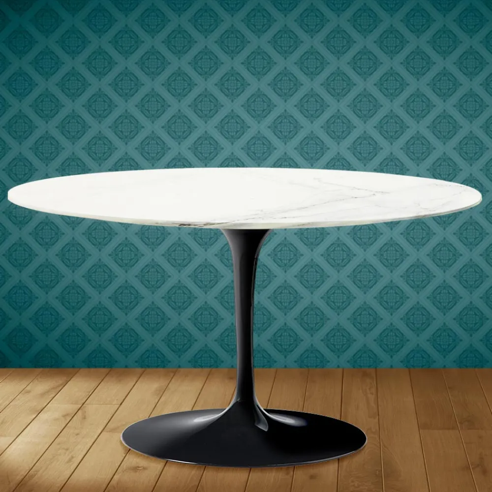 Couchtisch mit ovaler Platte aus Rem-Keramik, mattem Calacatta-Lincoln-Marmor-Effekt und Untergestell aus poliertem Aluminium , vollständig in Italien hergestellt . Dieses Einrichtungsaccessoire hat zwei einzigartige Eigenschaften: die Rem-Keramik und die ovale Form. Keramik zeichnet sich durch ihre komplexe und sehr feine Grafik aus, die es schafft, in jedem Wohnambiente, in dem sie platziert wird, eine warme und einladende Atmosphäre zu schaffen. Auch dieses Material ist von hoher Qualität und weist eine erhebliche Widerstandsfähigkeit auf . Die besondere ovale Form wird dank der Linie und ihrer Zweckmäßigkeit und Funktionalität immer beliebter, um Räumen Originalität zu verleihen.