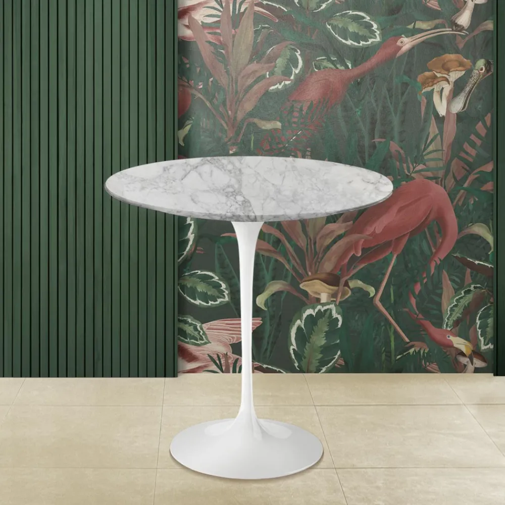 Couchtisch mit runder Platte aus Arabeskenmarmor und Untergestell aus poliertem Aluminium, vollständig in Italien hergestellt . Arabescato-Marmor ist allgemein als einer der wertvollsten Marmorsorten bekannt und zeichnet dieses Einrichtungselement aus. Durch die Verbindung von Arabeskenmarmor und poliertem Aluminium entsteht ein Produkt mit einem einzigartigen und raffinierten Stil , das sich dank seiner Schlichtheit und Eleganz in jeden Einrichtungsstil einfügen lässt. Dieser Couchtisch ist eine originelle Idee für alle, die die verschiedenen Wohnbereiche des Hauses geschmackvoll und stilvoll einrichten möchten, da er durch seine schlichten und geradlinigen Oberflächen für jeden Stil geeignet ist. Qualität und Widerstandsfähigkeit sind die Schlüsselwörter zur Beschreibung dieses Einrichtungsaccessoires, das sich hervorragend für alle Eventualitäten und Anlässe eignet.